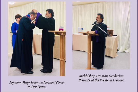 Dear Fr. Datev, from the bottom of our hearts we congratulate you on the joyous occasion of your 30th anniversary of Ordination and Consecration into Priesthood as well as the 20th anniversary of pastorate at St. Andrews. We extend our congratulatory wishes to Yeretzgin Sylva, your children Dikran and Sirouhie, relatives, and the entire faithful of St. Andrew Armenian Church of Cupertino. We also commend the services of the Parish Council, Ladies Society and the Organizing Committee for the noble gesture of celebrating the auspicious occasions.”