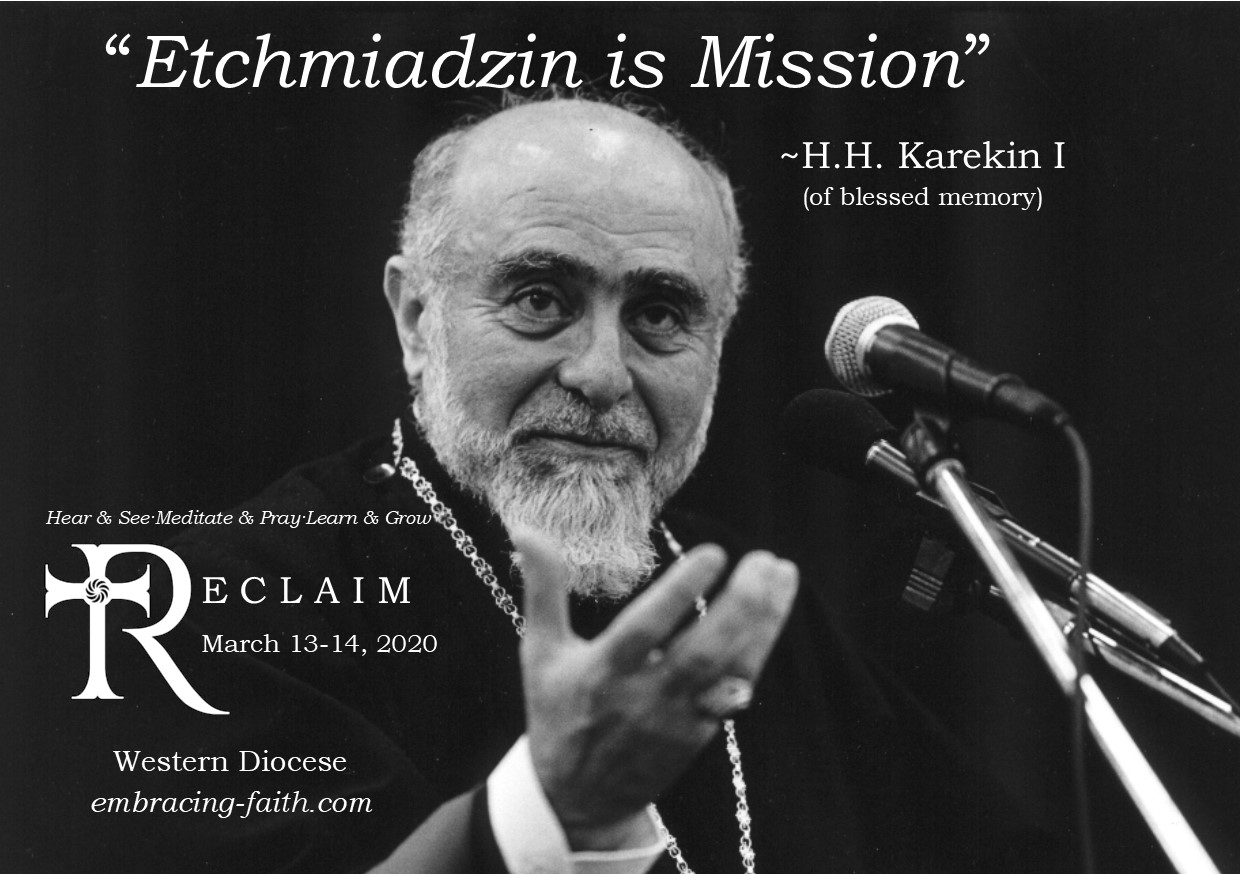 Reclaim 2020 is taking place March 13, 14 and 15 at the Western Diocese of the Armenian Church in Burbank, California. This year the focus will be Holy Etchmiadzin, the Christ-Center of the Armenian people. With talks, videos, discussions, meditations and prayers, this Conference promises to once-again help participants “Reclaim” something the precious Faith that ties us to God and all His creation.