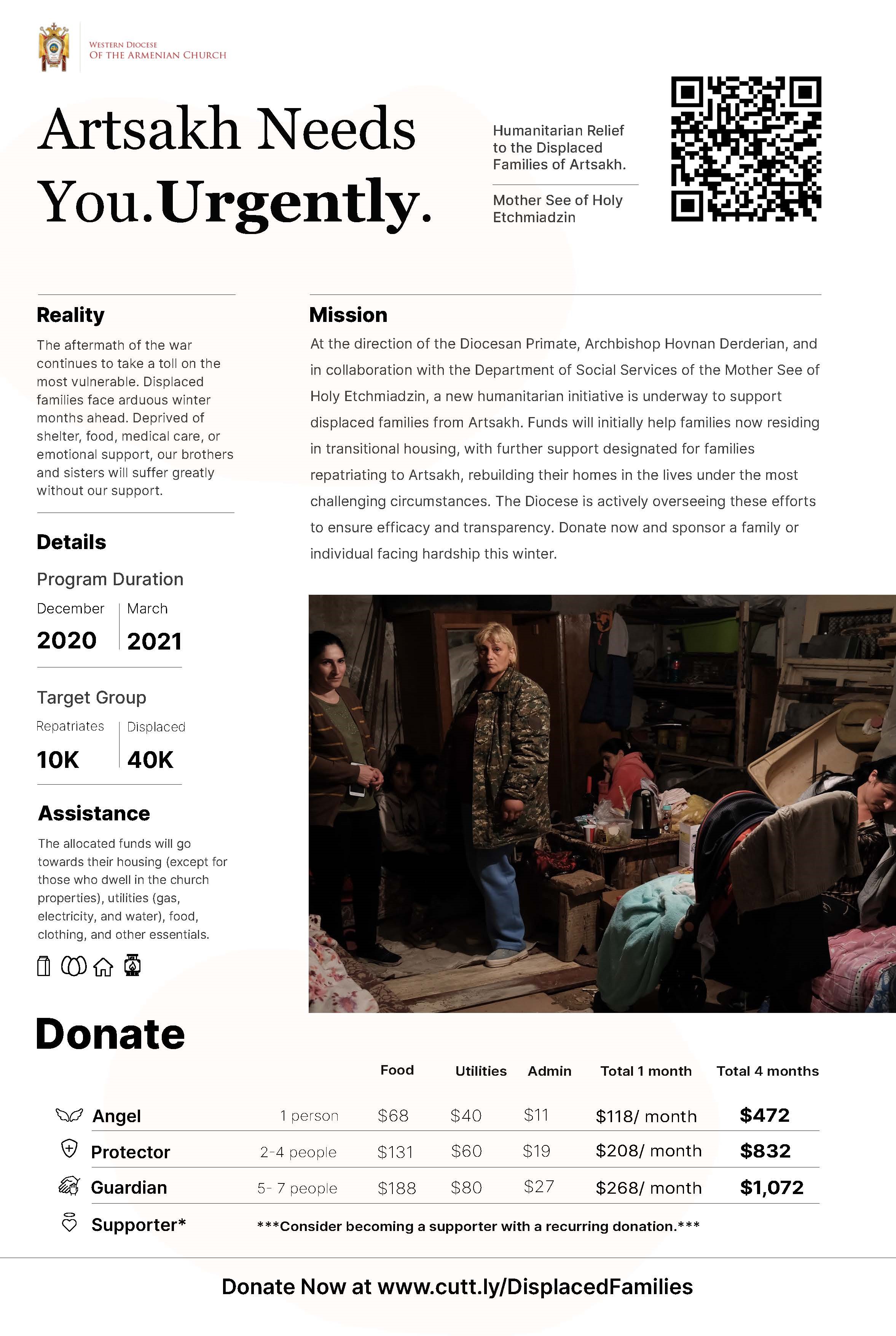 As we have recently announced, at the direction of the Diocesan Primate His Eminence Archbishop Hovnan Derderian and in collaboration with the Department of Social Services of the Mother See of Holy Etchmiadzin, the Western Diocese has launched a new humanitarian initiative aimed at supporting displaced families from Artsakh.