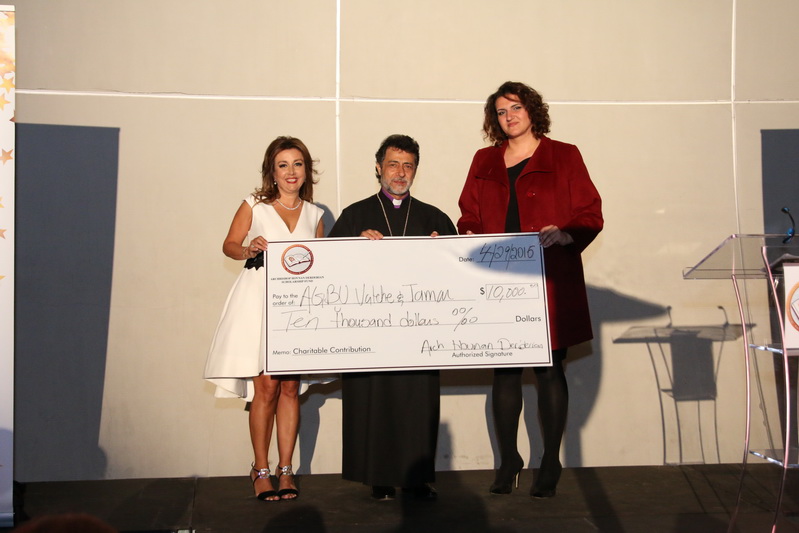 Indeed, this year, three Armenian schools including Alfred and Marguerite Hovsepian School, AGBU Manoogian-Demirdjian School, and AGBU Vatche and Tamar Manoukian High School were presented with checks totaling $35,000 for student tuition assistance. Archbishop Hovnan Derderian, Alice Chakrian, and Eileen Keusseyan presented the checks to the principals and representatives of each school.