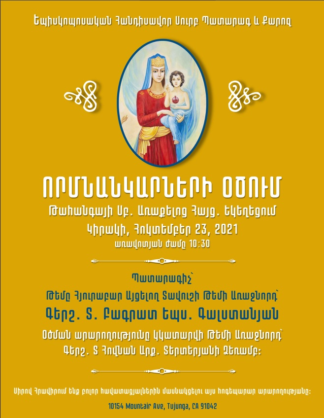 The Western Diocese often welcomes visiting clergy from Armenia. On Sunday, October 17, the Primate of the Tavush Diocese His Grace Bishop Bagrat Galstanyan delivered the sermon at the Ghevontiants Cathedral in Burbank. Bishop Galstanyan will be the celebrant at the Holy Apostles Church in Crescenta Valley this Sunday, October 23rd. All are welcome to attend.