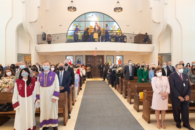 More than 350 attendees per day occupied the new sanctuary for Friday's Opening of the Door Ceremony, Saturday's Consecration, and Sunday's first regular Divine Liturgy service ("Badarak") in the new church. The clergy, public officials, parishioners, friends, and other special guests, celebrated with remarks, presentations and sacred music -- and were masked according to State COVID Protocol. Newly-commissioned stained glass windows, paintings, mosaics, crosses and icons adorned the sanctuary as the church was formally consecrated. An overflow tent outside with live a video and audio feed accommodated additional parishioners, and receptions followed every service.