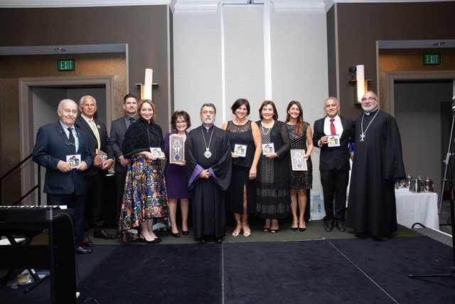 Pontifical Encyclicals (Gontags) were bestowed by His Holiness Karekin II, Catholicos of All Armenians and presented by His Eminence Archbishop Hovnan Derderian to Dave & Loie (Israelian) Butterfield, Khoren & Kathy Kassardjian, Harry Krikorian, Dr. Berge & Terry Minasian, and Alan & Mireille Yaghdjian.