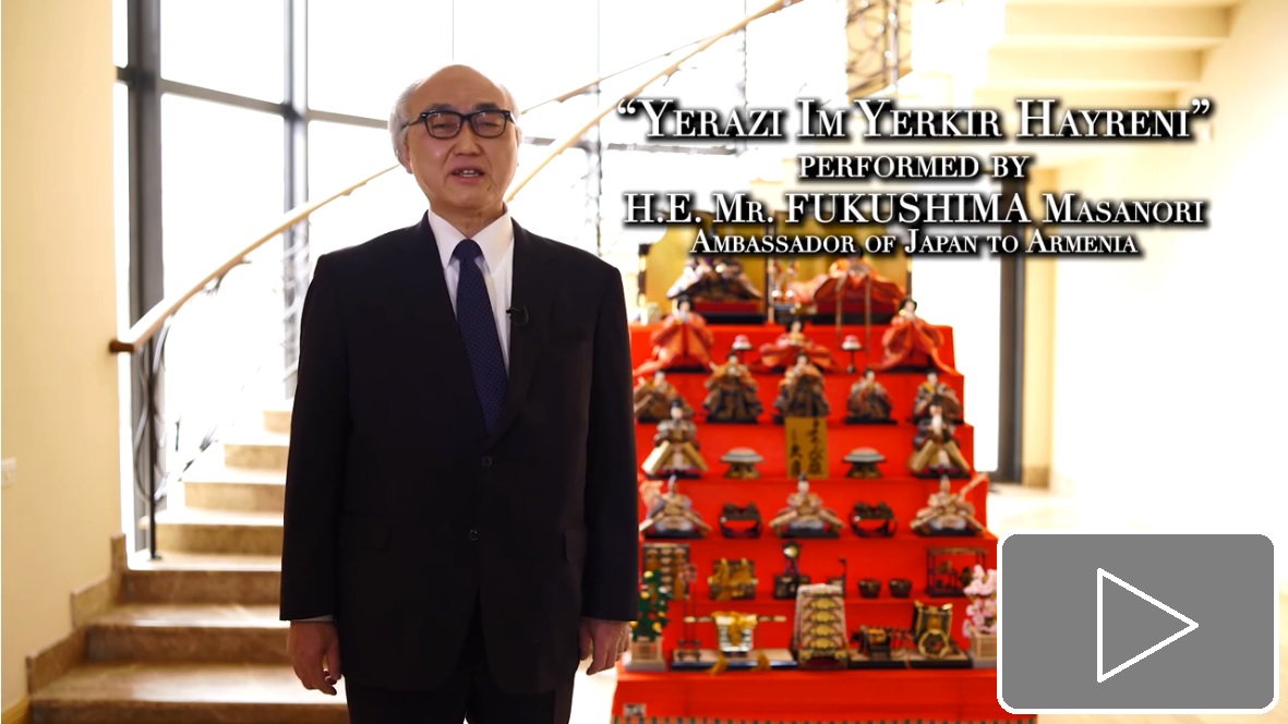 By means of a special video interview, guests were greeted by His Excellency Ambassador Masanori Fukushima, Ambassador Extraordinary and Plenipotentiary of Japan to Armenia, who spoke of the century-long relations between the Japanese and Armenian people, the prospects of further collaboration, and the warm hearts that both peoples are blessed with.