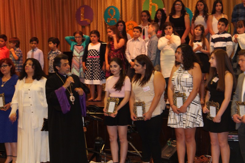 In his address to the students, the Primate congratulated the graduating class commending their zealous approach to Armenian education. Archbishop Derderian encouraged and motivated the younger students to renew their commitment to education in the upcoming year. His Eminence also recognized the tireless efforts of Dr. Ellie Antreassian, the Chairlady of the Saturday School Executive Committee of the Western Diocese, the school’s principal Mr. Norair Dadourian, the teachers and well as the volunteers for their invaluable roles of preserving the Armenian identity in the Diaspora.