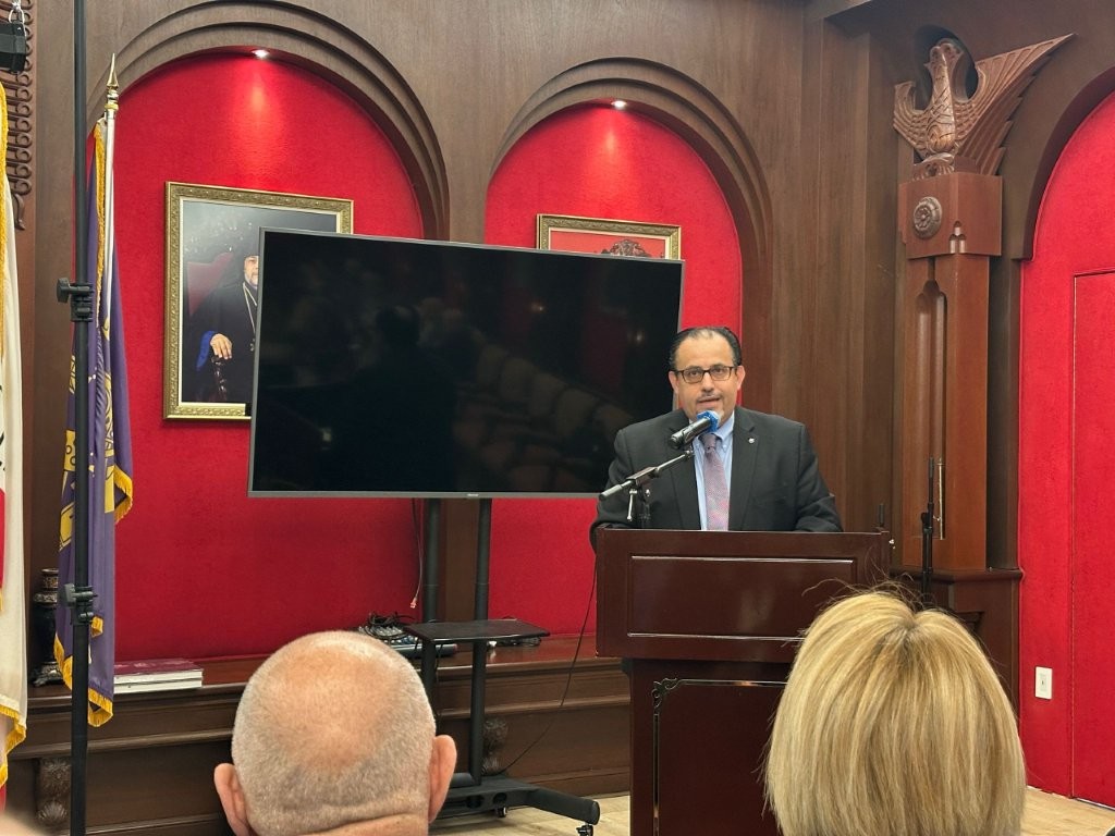 During the program, Rev. Fr. Nzhdeh Keshishyan, Pastor, Armenian Church of North Hollywood, represented Archbishop Hovnan Derderian, Primate of the Western Diocese of the Armenian Church of North America. In his remarks, Fr. Keshishyan praised Prof. Barlow Der Mugrdechian for his informative presentation, and commended the TCA Metro Los Angeles Chapter for organizing the kinetson. Fr. Njteh directed his concluding remarks at Honorary Consul Zimmerli by expressing his gratitude to the Swiss people for their contributions in aiding Armenians during the genocide.