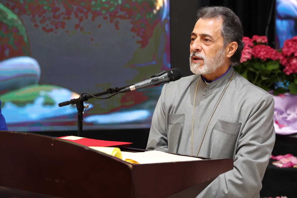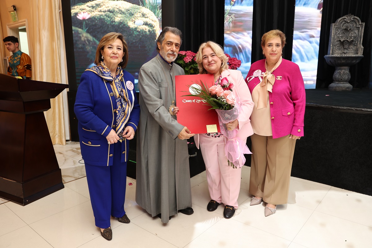 In his heartfelt address, Archbishop Hovnan Derderian, Diocesan Primate, expressed deep gratitude to Mrs. Navasargian, praised the dedication of Committee Co-Chairs Mrs. Araxie Boyamian and Mrs. Heidi Kavoukjian, and honored the contributions of founding member Mrs. Hermine Janoyan.