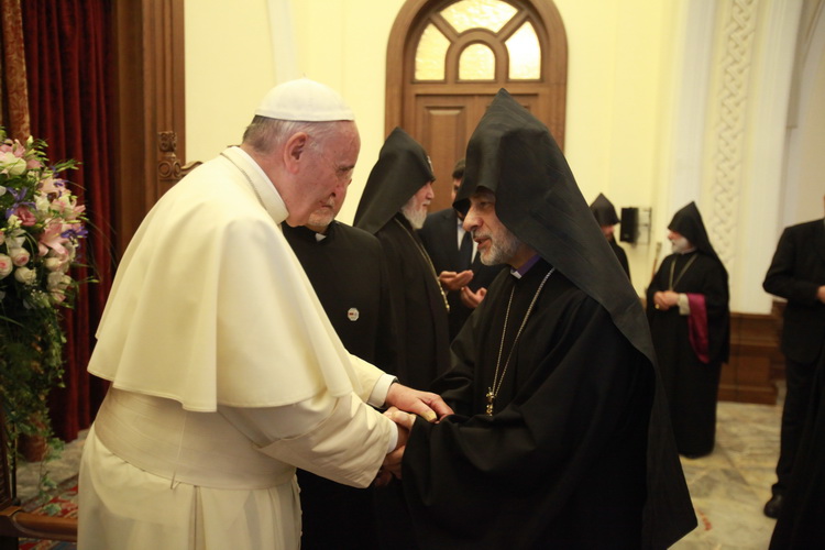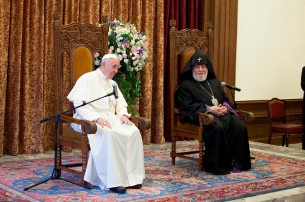 On the evening of June 24, the meeting of Pope Francis of the Roman Catholic Church and His Holiness Karekin II, Supreme Patriarch and Catholicos of All Armenians; was held in the Mother See of Holy Etchmiadzin. The meeting was attended by the delegation of the Catholic Church; Bishops of the Armenian Church; Diocesan Primates from Armenia and Diaspora and Locum Tenens.