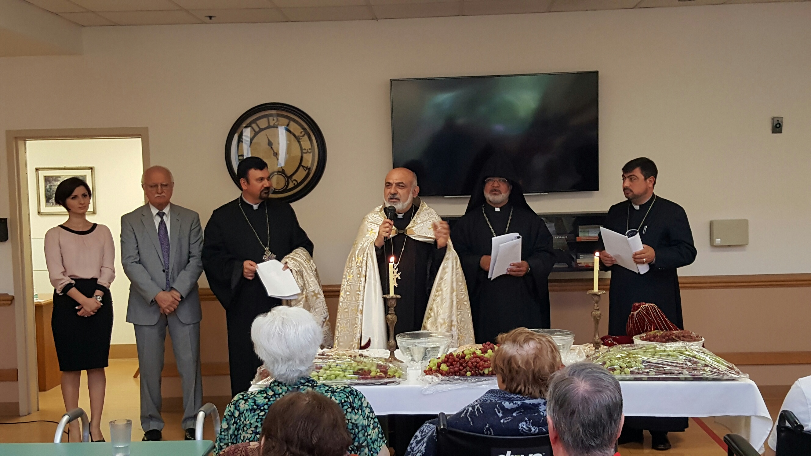 Later that afternoon, Archpriest Fr. Manoug Markarian, Archpriest Fr. Sarkis Petoyan and the Rev. Fr. Zareh Mansuryan visited the residents at Ararat Home in Eagle Rock where they performed the Blessing of the Grapes ceremony.