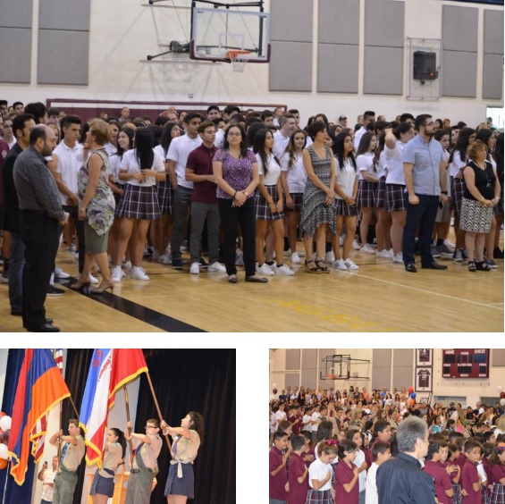 A.G.B.U. Manoogian-Demirdjian School kicked off its 41st academic year with an opening day ceremony on the morning of Wednesday, August 17, 2016. The Nazarian Gym was packed to capacity with students from kindergarten through 12th grade, faculty, staff, guests, administration, parents, board members, clergy, and members of the Demirdjian family.