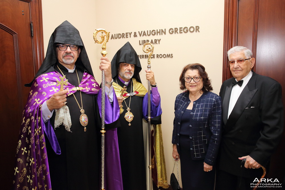 In a special ceremony, the Center was officially dedicated in honor of benefactors Dr. and Mrs. Agop and Ludovica Aintablian. With the participation of the clergy, the “Sinan and Angele Sinanian Main Lobby,” “Audrey and Vaughn Gregor Library and Conference Rooms,” and “Galust Babakhanian and Family VIP and Reading Room” were also dedicated during the evening.