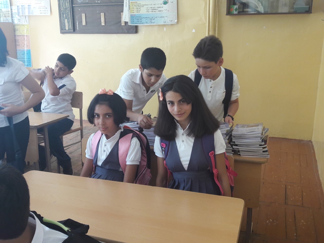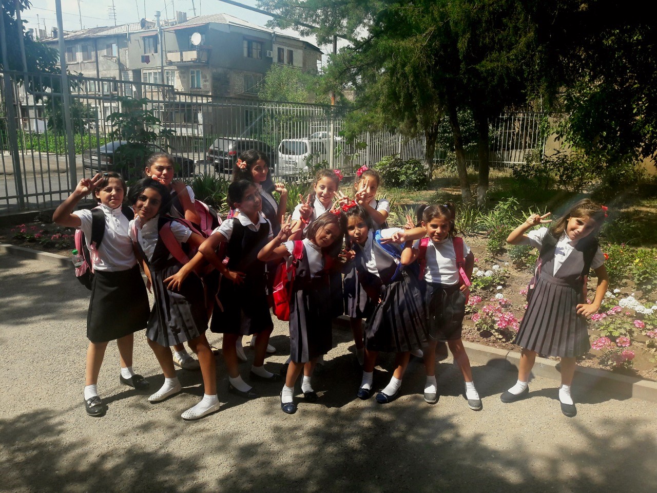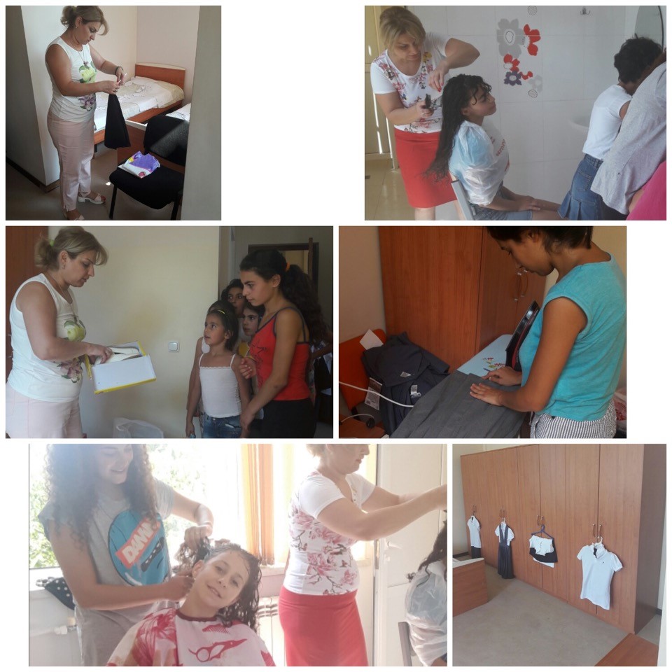 September 1 is Knowledge Day in Armenia - the first day of the new school year.  Fifteen girls ages 7-13 who now live at Mer Hooys went to school, accompanied by mentors Syuzan and Hasmik, with new dresses, new haircuts and big smiles on their faces. Program graduate Ani H and mentor Yn. Lusine B. gave the little ones’ new hairdos.  Those of the original class of older girls who are living in the new Mer Hooys graduate wing of the Nakashian Childrens Support Center helped prepare backpacks and new uniforms for the little ones.