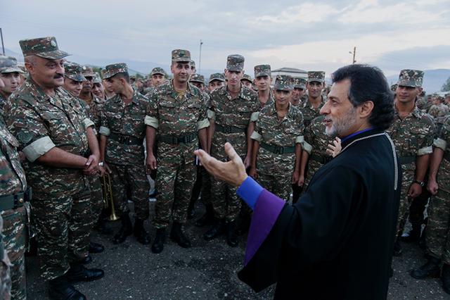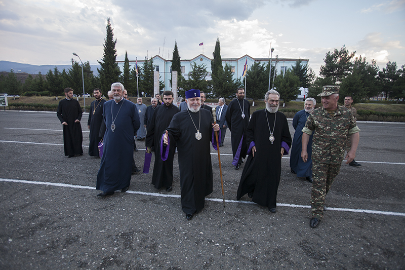 On September 6, His Holiness Karekin II, Supreme Patriarch and Catholicos of All Armenians; accompanied by the members of the Supreme Spiritual Council (SSC), visited a military unit of the Nagorno Karabagh Republic (NKR) Defense Army, where they met with commanders and soldiers.