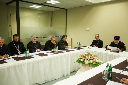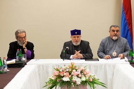 Chairing the meeting sessions were His Grace Bishop Arshak Khachatryan, Chancellor of Mother See of Holy Etchmiadizn; and His Grace Bishop Vahan Hovhannisyan, Primate of the Armenian Diocese of France.