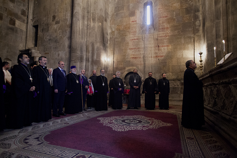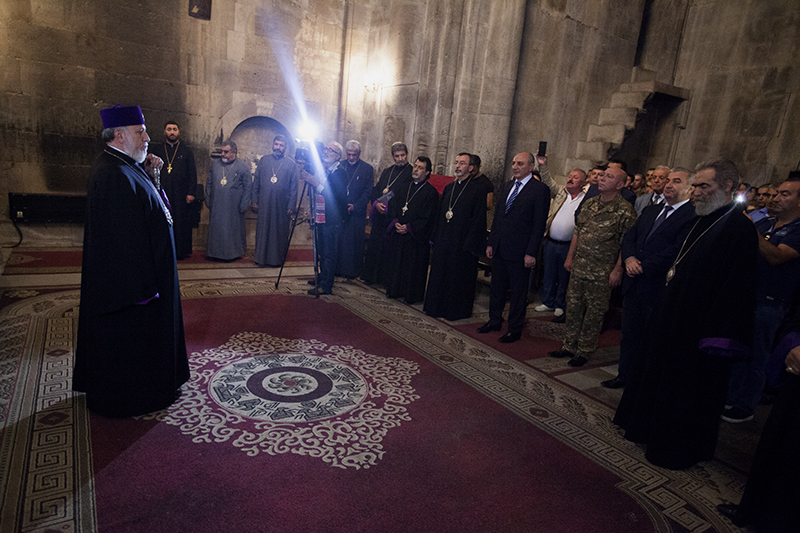 On September 7, His Holiness Karekin II, Supreme Patriarch and Catholicos of All Armenians; accompanied by the members of the Supreme Spiritual Council (SSC), visited the Gandzasar Monastery, where a “Hrashapar” service was offered.