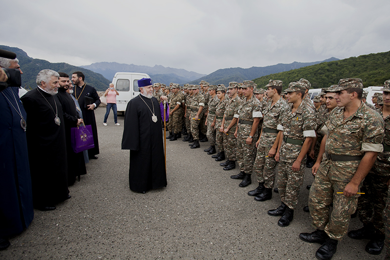 “We are here to convey our blessings to the brave people of Artsakh, to express our support to the Artsakh authorities, and to bless the brave Armenian warriors of the NKR Army so that their arm will always be victorious”, stated His Holiness.