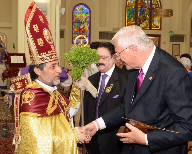 Los Angeles County Supervisor Michael D. Antonovich was also honored during the service with the Archbishop’s Award in recognition of his unwavering service rendered to the Great City of Los Angeles. The award was presented to the Supervisor along with the Primate’s Message of Blessing and Commendation. Archbishop Derderian congratulated Supervisor Antonovich on the award, extended his blessings to his family and wished him continued success in his endeavors.  Â
