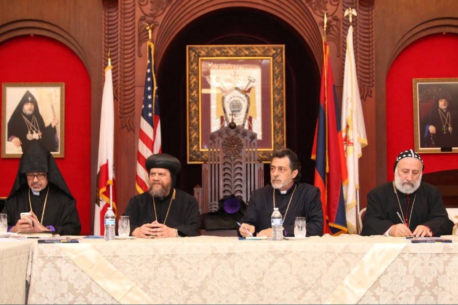 Spiritual leaders of the Armenian Apostolic, Coptic Orthodox and Syriac Orthodox Churches met on Wednesday, October 19, 2016 at the Hampar Family Room of the Turpanjian Diocesan Building of the Western Diocese.