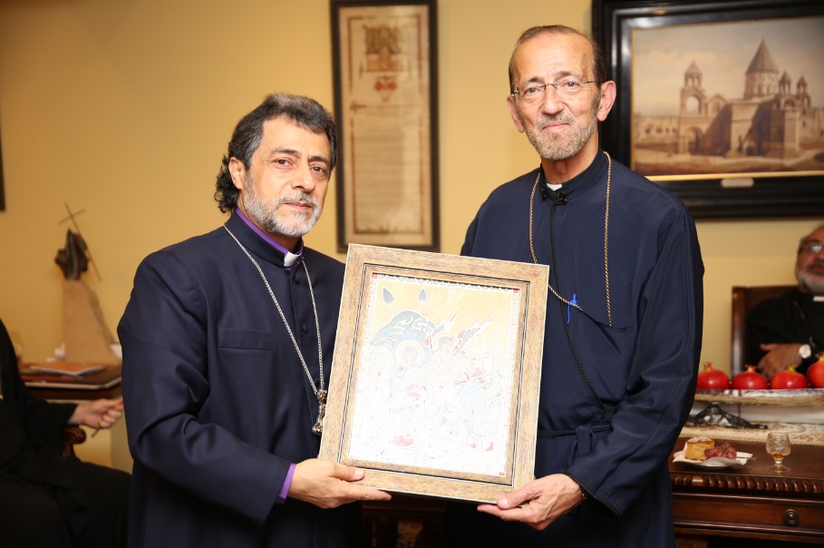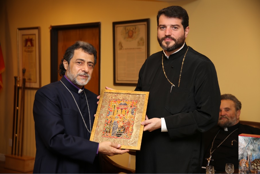 The high-ranking clergymen were greeting by the Primate, the Vicar General and the Very Rev. Fr. Dajad Dz. V. Yardemian. The main topics of discussion were the organization of a joint conference centered on religious freedom, youth involvement in the Church and community and serving the needy. The planning and organizational efforts of the aforementioned topics will be discussed in greater detail during the next meeting scheduled on Tuesday, December 6, 2016 also at the Diocesan Headquarters. Â Â