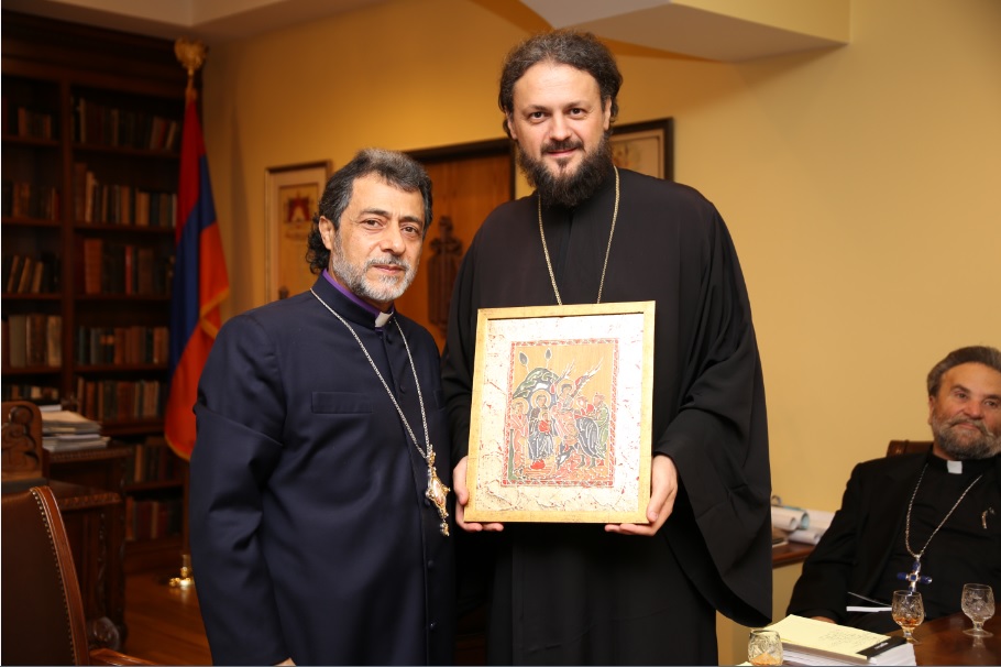 At the initiative of His Eminence Archbishop Hovnan Derderian, Primate of the Western Diocese of the Armenian Church of North America, and the Very Rev. Fr. John Bakas, Dean of St. Sophia Greek Orthodox Cathedral, the leaders of the Armenian, Greek and Serbian Orthodox Churches gathered at the Western Diocese of the Armenian Church of North America on Tuesday, November 8, 2016.Â
