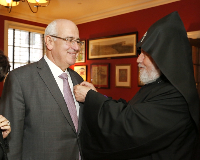 On this occasion, His Holiness granted AGBU President Mr. Berge Setrakian the title "Knight of the Mother See" and Pontifical Medal, for the pious services rendered to the nation and the exceptional contribution made to the vibrancy of Holy Etchmiadzin.
