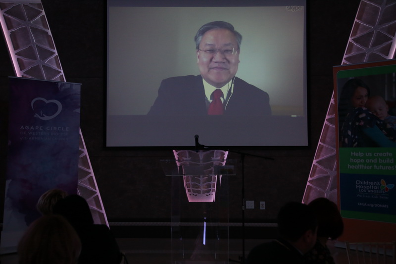 An honoree of the Western Diocese, Dr. Thomas Lee, Director of the Vision Center at Children’s Hospital Los Angeles joined the guests via Skype and made an informative presentation about the tremendous achievements in preventing blindness in premature infants.