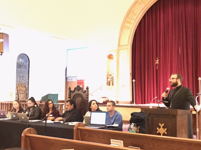 As first session continued the ACYO Central Council, Chairperson Sofia Dilsizian, reported on version projects which were implemented throughout the year including, the inter-diocesan youth meeting, junior and senior retreat, and the very successful Sports Weekend tournament. Archpriest Fr. Shnork Demirjian, of St. Peter Armenian Church of Van Nuys, offered a spiritual reflection at the end of the first session. Following the convening of the day's meeting, the delegates were hosted to a fun social event at the parish hall.