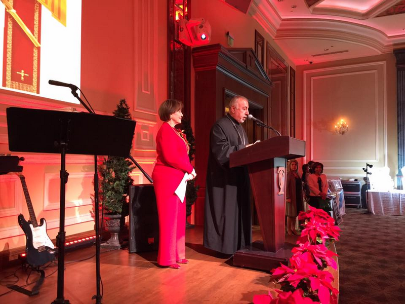 Following the invocation by Archpriest Fr. Manoug Markarian, His Eminence Archbishop Hovnan Derderian thanked everyone for attending the event and extended his gratitude to Drs. Petros and Karine Taglyan for their unwavering support of the Mother See of Holy Etchmiadzin and for their philanthropic contribution to various Diocesan projects. An award, recognizing the invaluable service of the couple was presented to Mrs. Karine Taglyan by the Primate. The Primate commended the efforts of the members of St. Leon Cathedral Ladies Guild for their hard work and dedicated service in ensuring a festive and memorable event year after year. In recognition of her resolute leadership, the Primate presented a special gift to the Guild’s Chairlady Mrs. Araxie Boyamian.