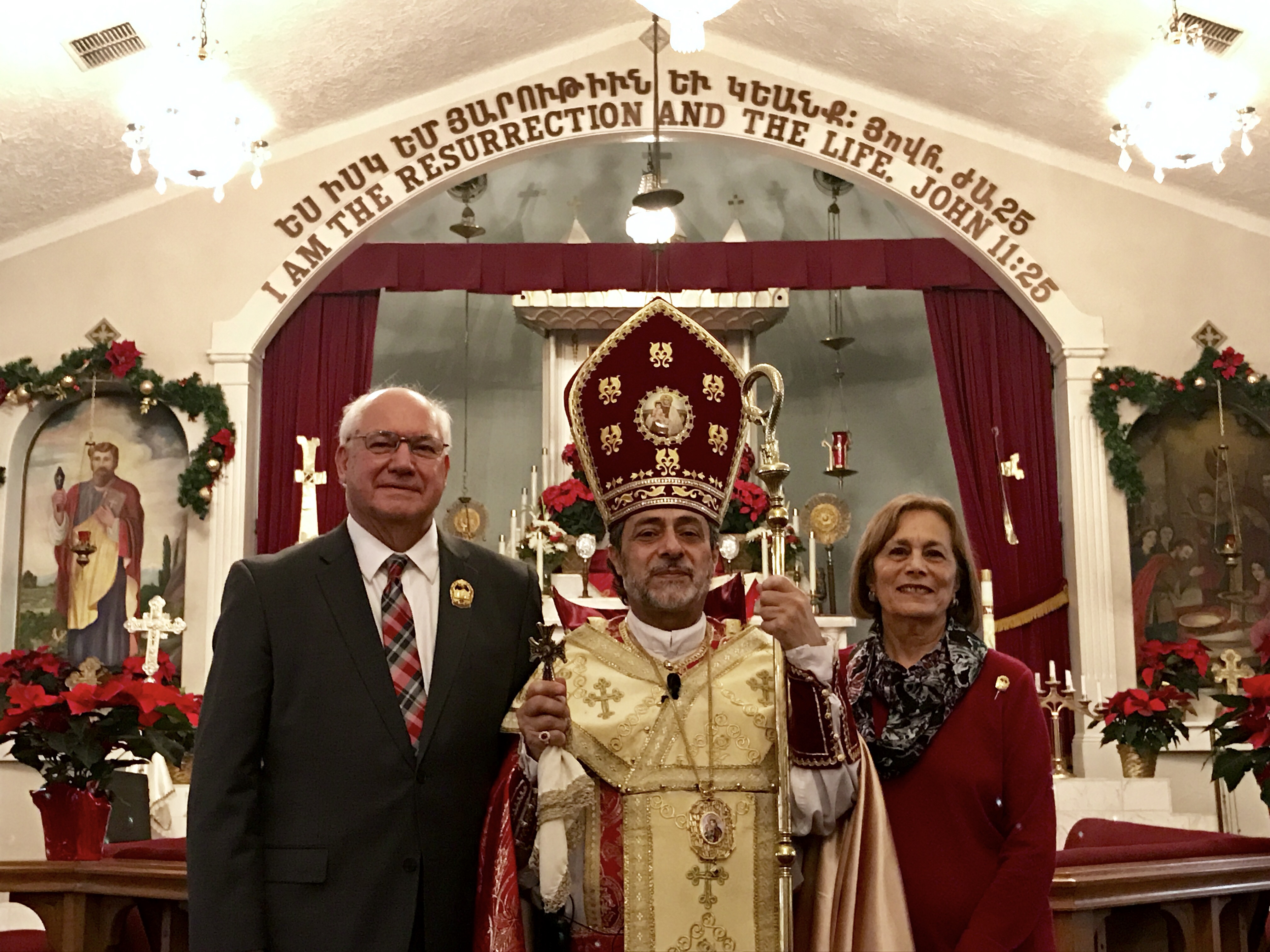 Mr. Richard Ahronian was honored during the service with the prestigious St. Nerses Shnorhali medal of honor which was bestowed upon the parishioner by His Holiness Karekin II, Supreme Patriarch and Catholicos of All Armenians at the request of the Diocesan Primate. Archbishop Derderian commended the honoree on his selfless and steadfast service rendered to St. Gregory the Illuminator Armenian Church in Fowler.