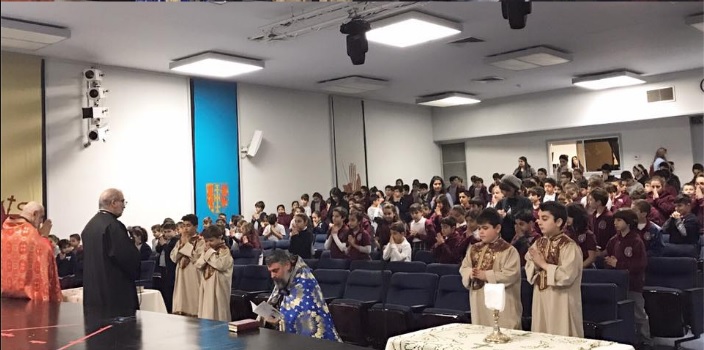 On the following day, the Very Fr. Pagrad Dz. V. Berjekian, the Very Rev. Fr. Yeremia Abgaryan and Archpriest Fr. Sarkis Petoyan visited students at AGBU Vatche and Tamar Manoukian School After inspirational homilies from the clergy, the students received Holy Communion.