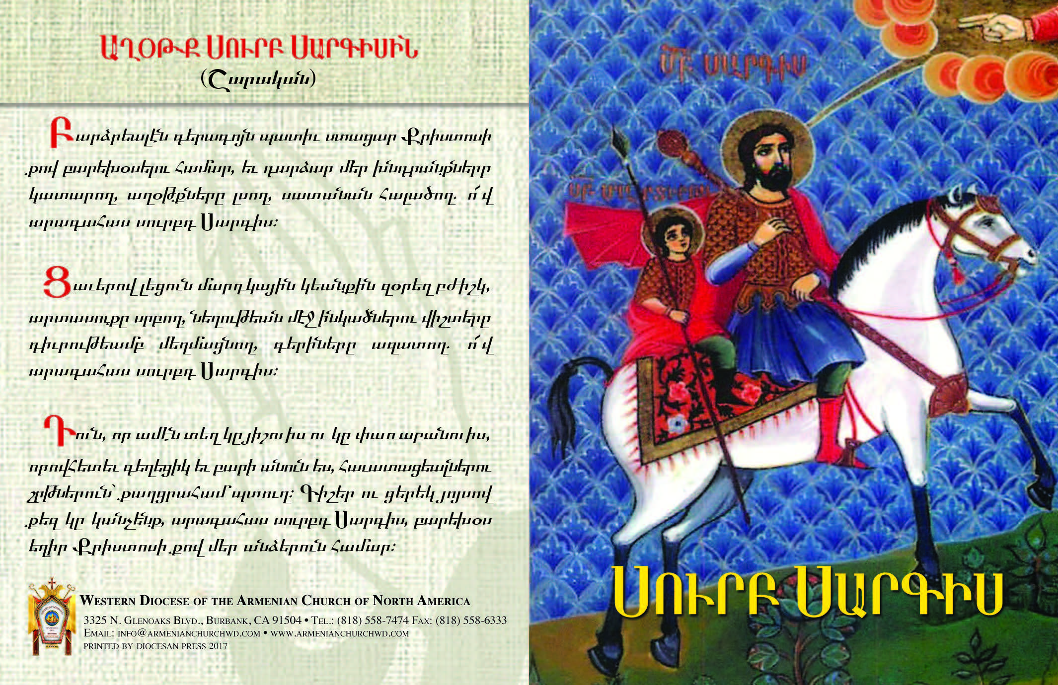 According to Armenian Church Calendar, the Feast Day of St. Sarkis the Warrior will be observed on Saturday, February 11.