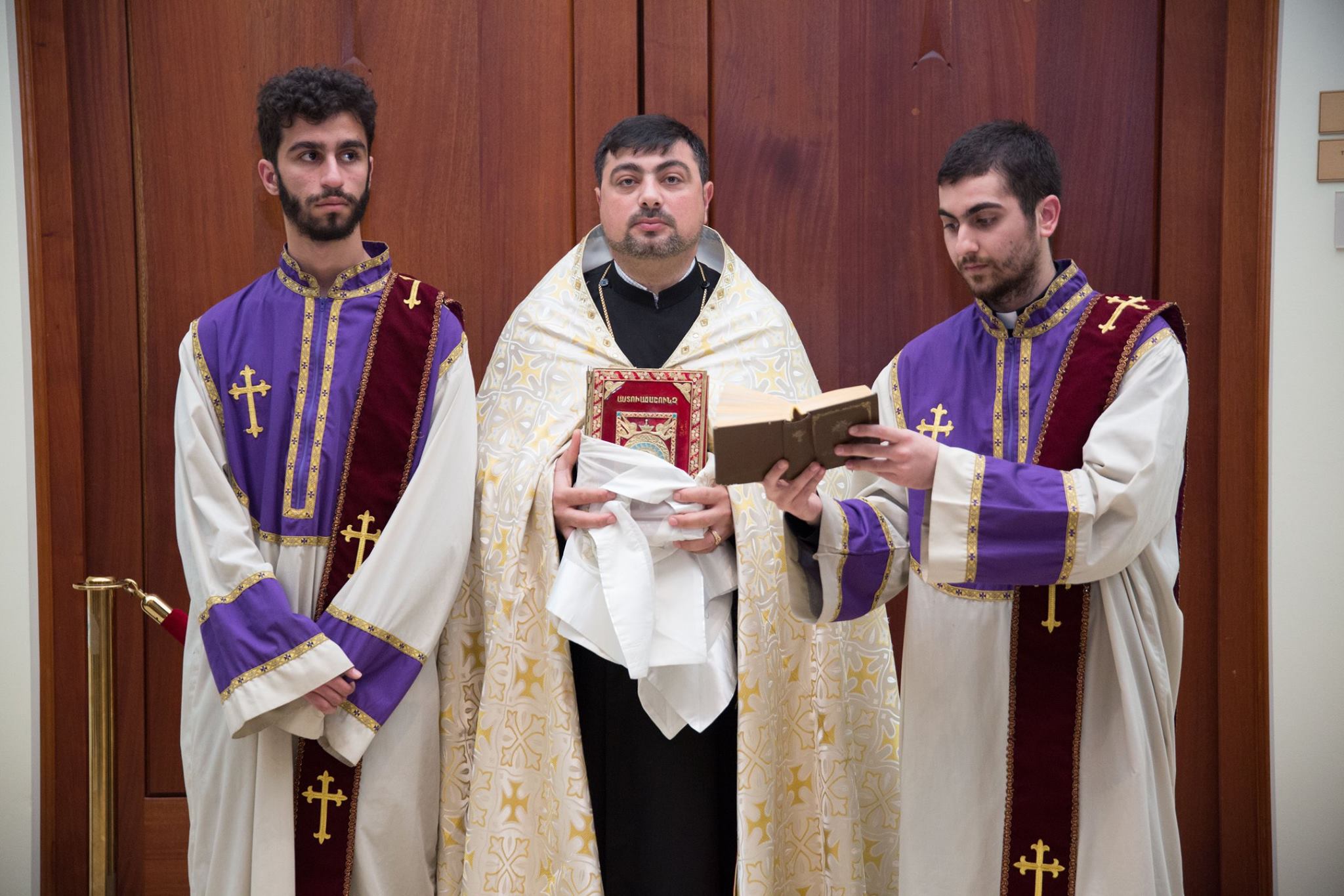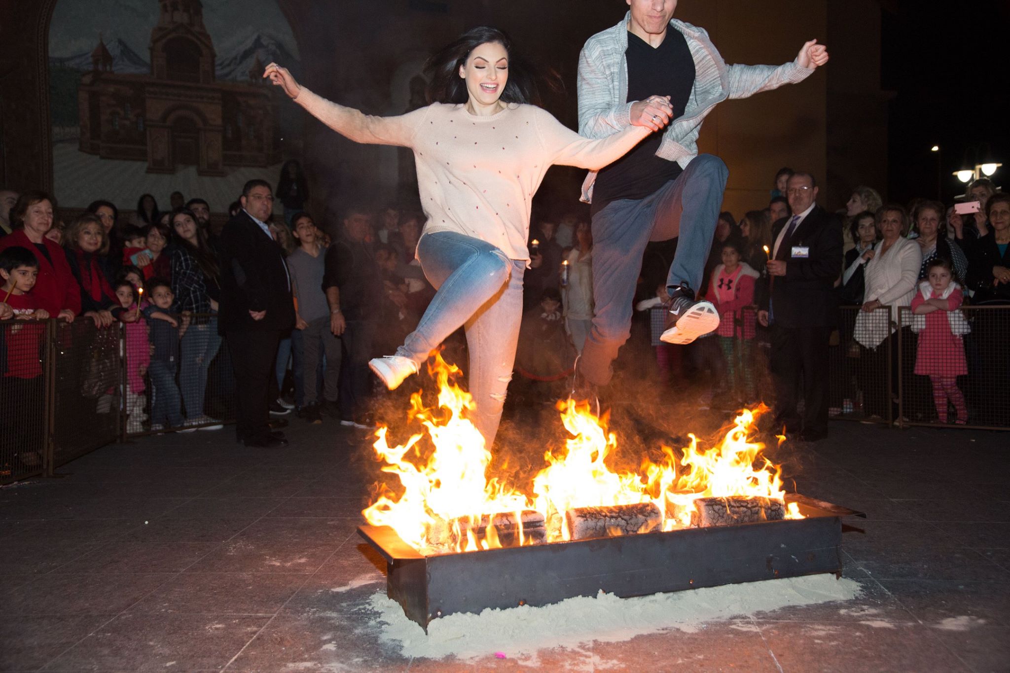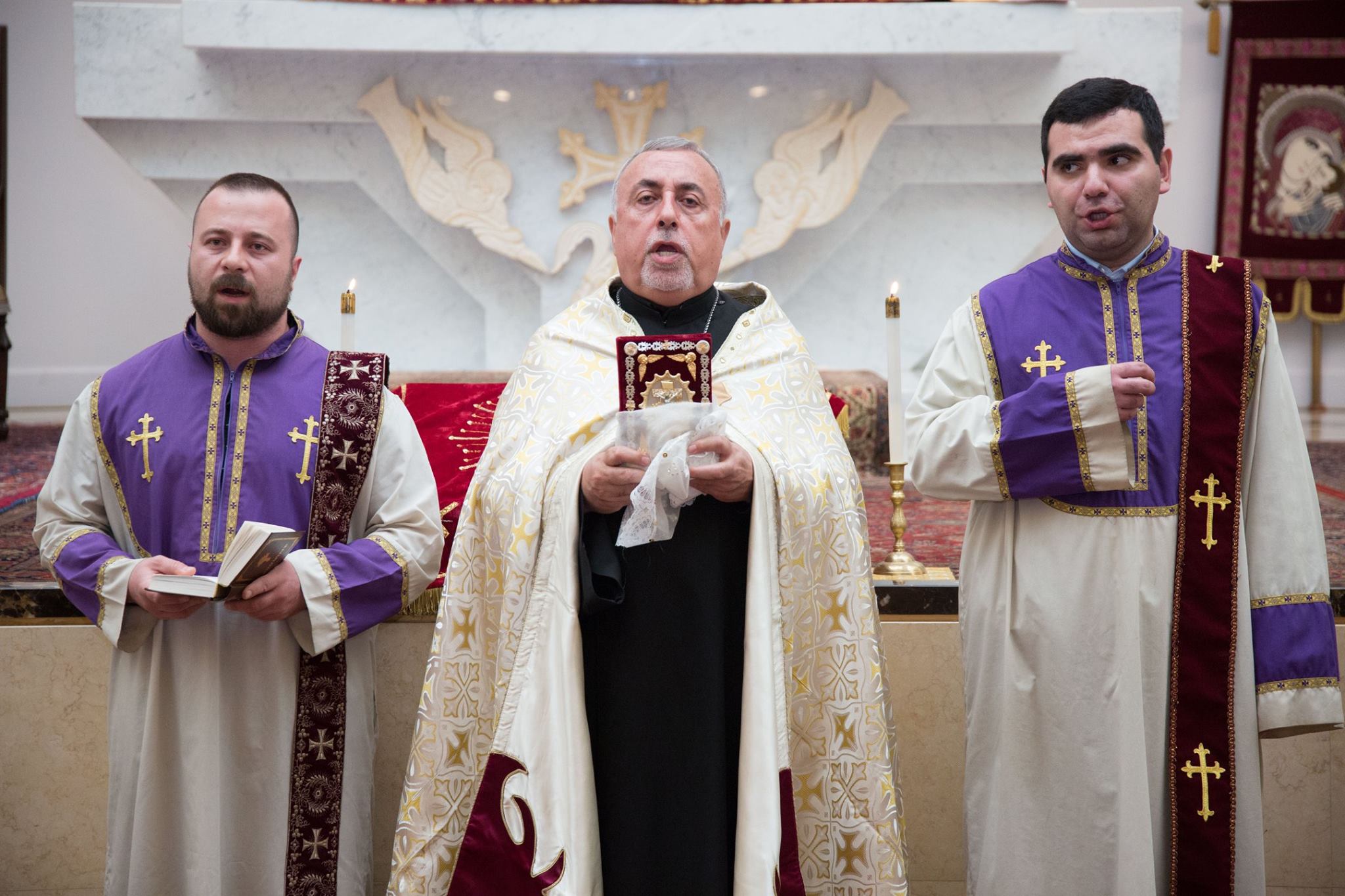 On February 13, 2017, the eve of the feast, at 6:00 p.m., the Diocesan Primate presided over the Dyuarnuntarch service at St. Leon Armenian Cathedral. Clergy of the greater Los Angeles area including visiting bishop from Armenia His Grace Bp. Sion Adamyan participated in the service. Following the traditional blessing of the Four Corners of the World, Andastan, the clergy led a processional to the Turpanjian Plaza for the lighting of the bonfire, symbolizing the Light and Wisdom of Christ.