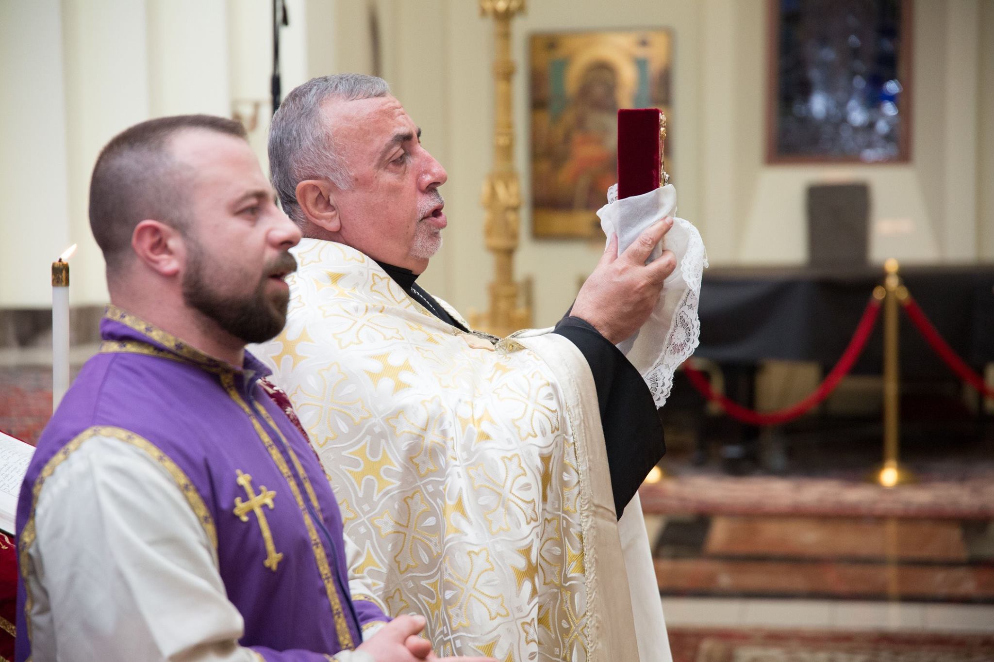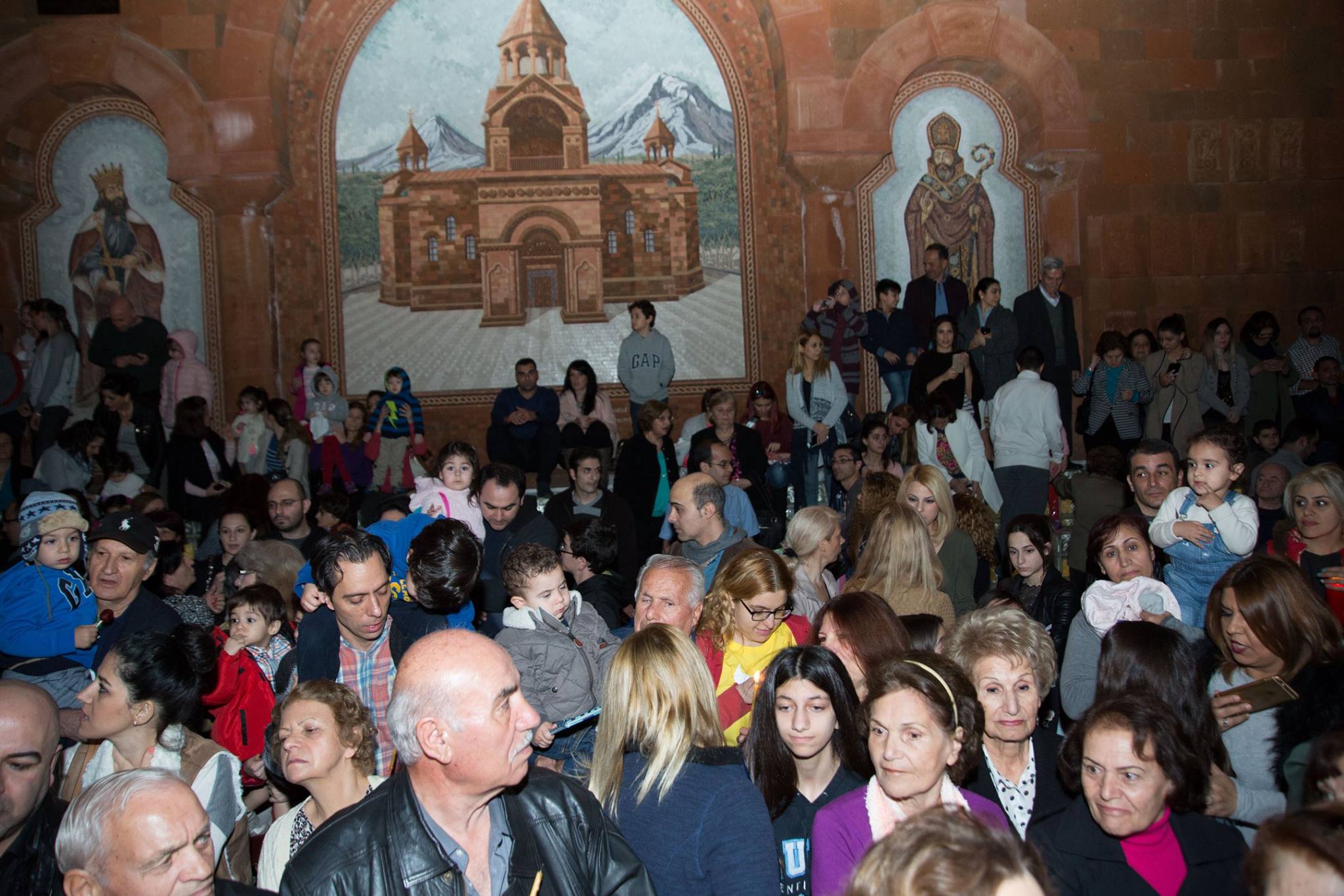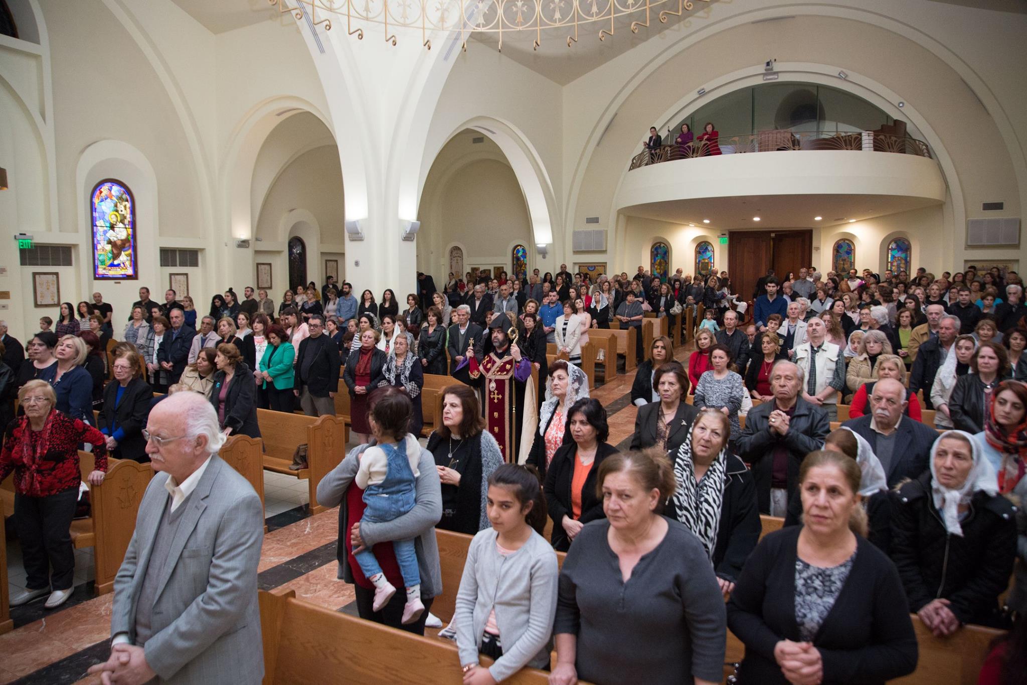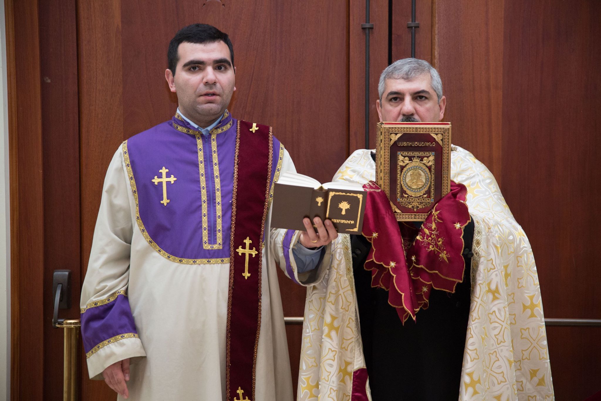 On February 13, 2017, the eve of the feast, at 6:00 p.m., the Diocesan Primate presided over the Dyuarnuntarch service at St. Leon Armenian Cathedral. Clergy of the greater Los Angeles area including visiting bishop from Armenia His Grace Bp. Sion Adamyan participated in the service. Following the traditional blessing of the Four Corners of the World, Andastan, the clergy led a processional to the Turpanjian Plaza for the lighting of the bonfire, symbolizing the Light and Wisdom of Christ.