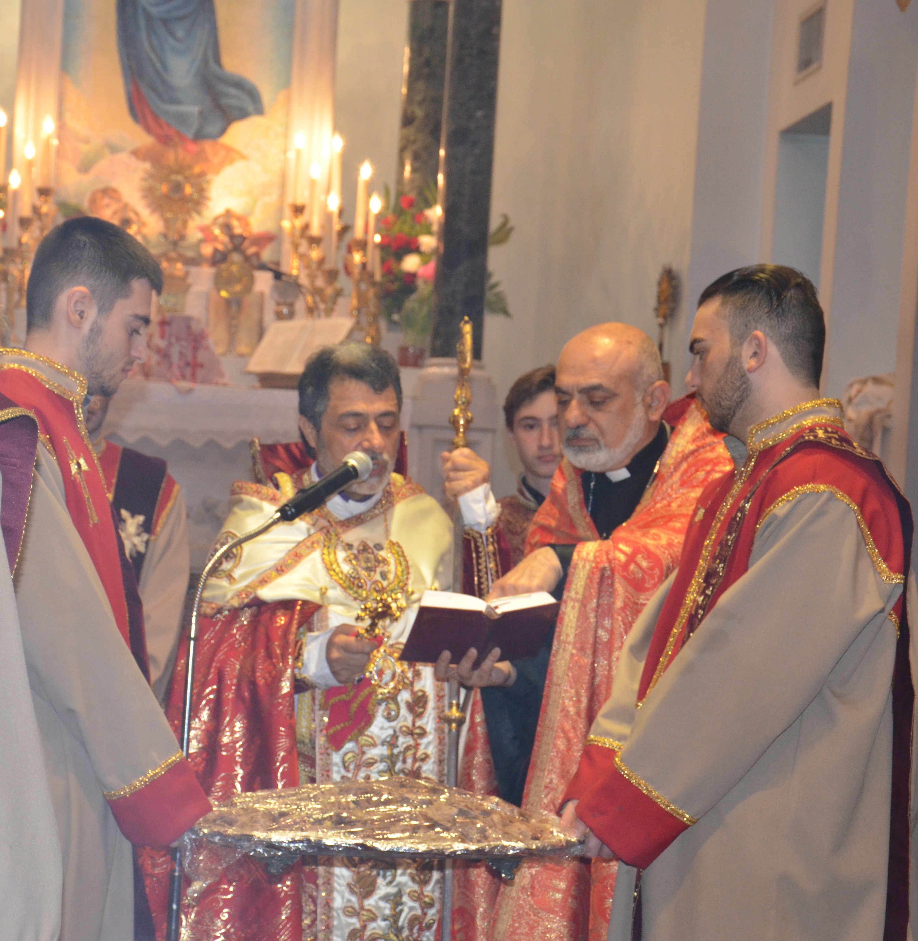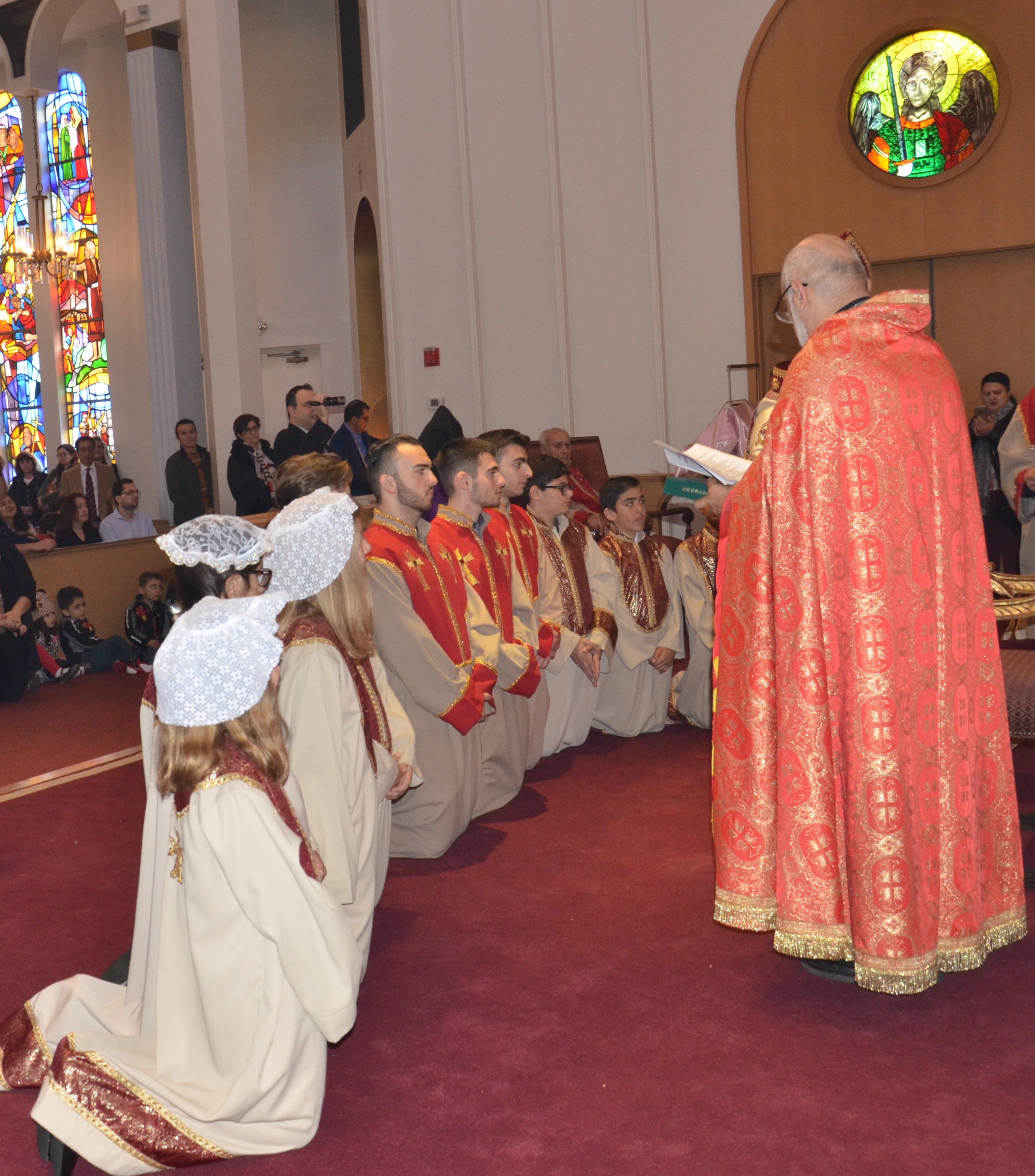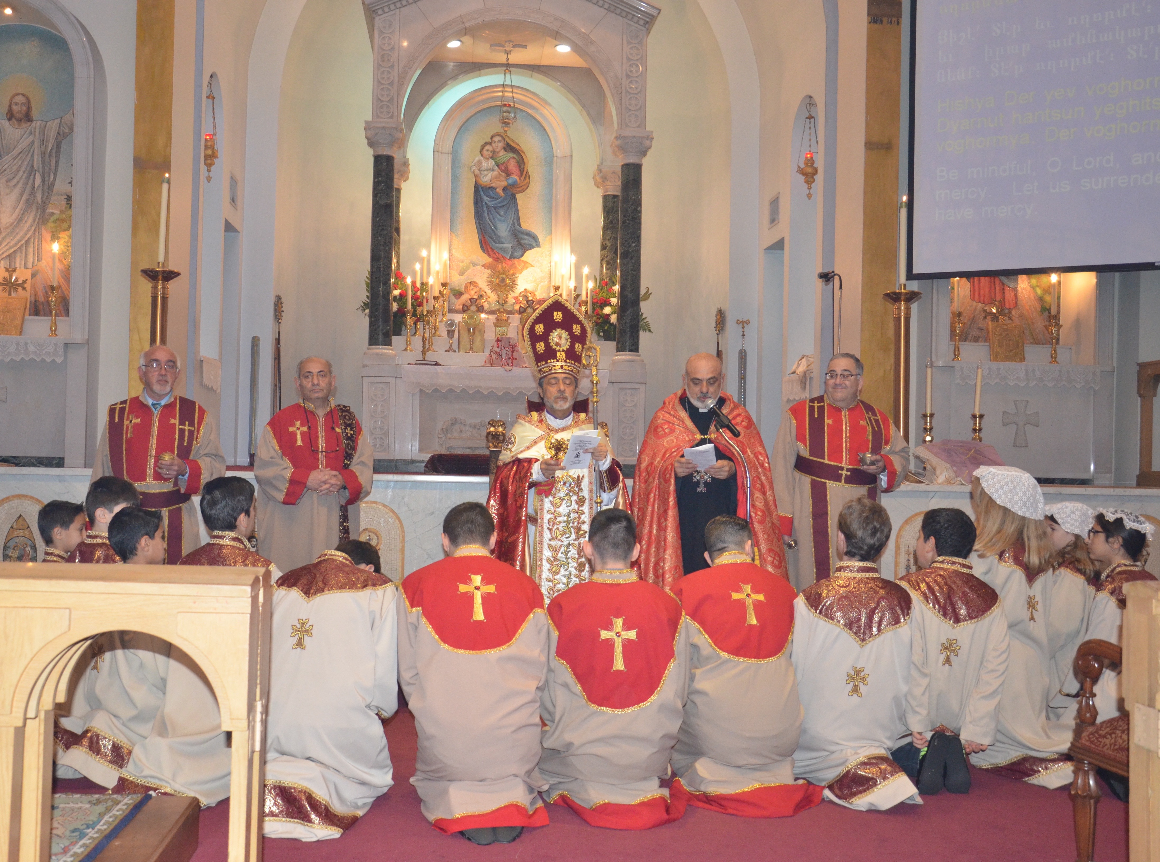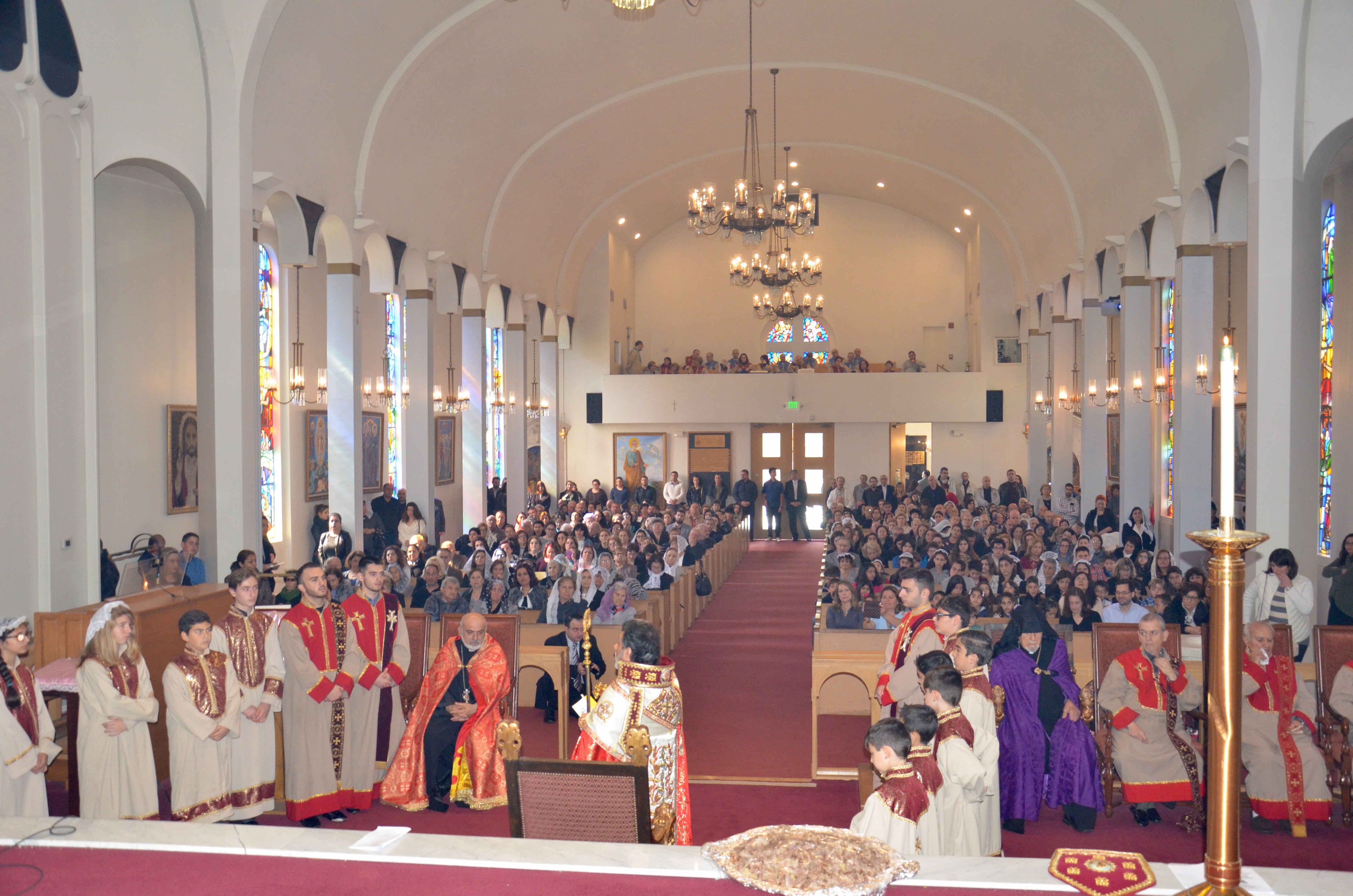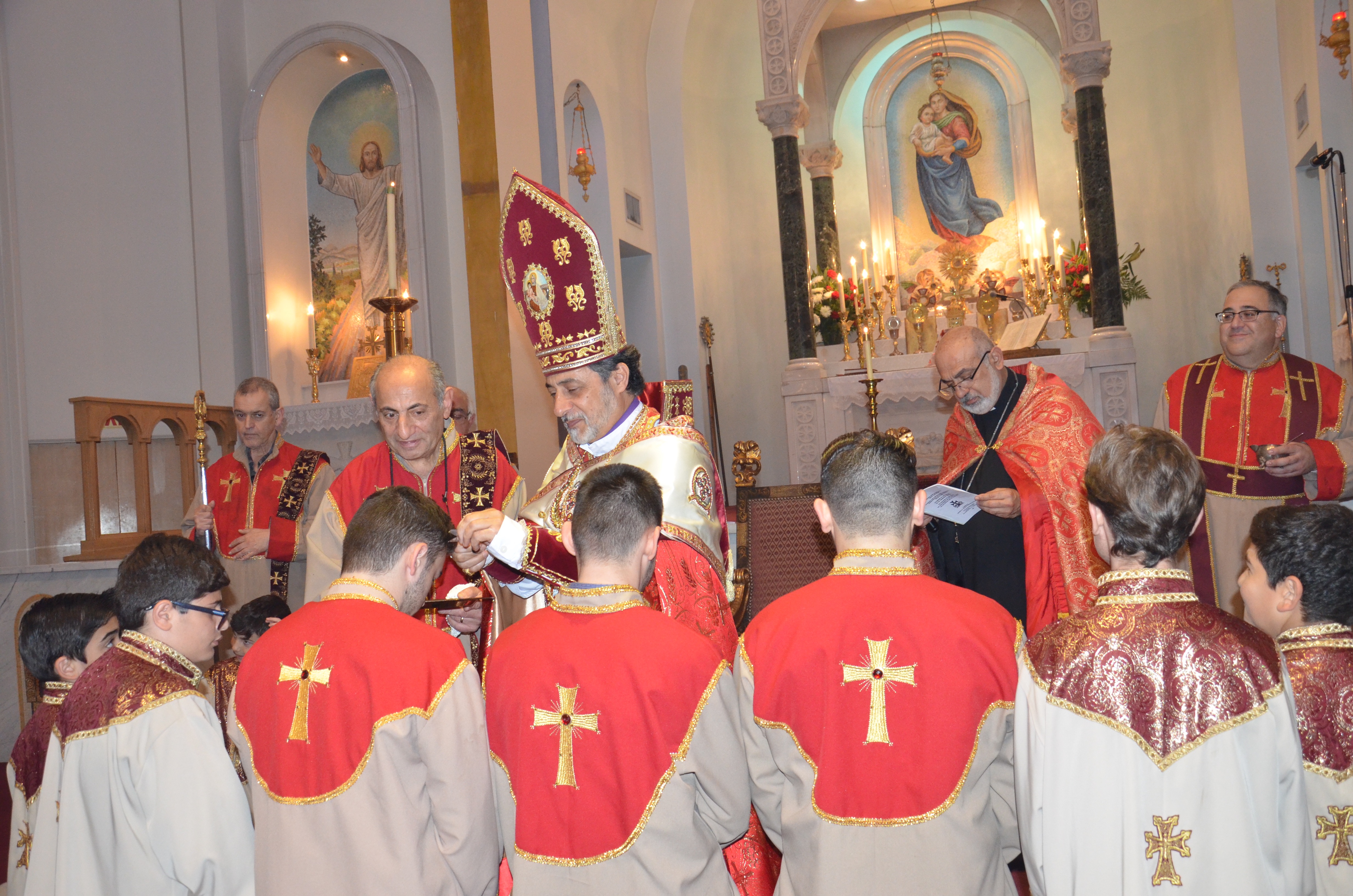 During the service, Archbishop Hovnan Derderian granted four minor orders of acolyte to Gevork Tarakchyan, Armen Kirakossian, Narek Ishkhanyan, Sarkis Zhamkochyan, Aren Kedikian, Kristapor Kedikian, Ani Zhamkochyan, Lauren Missakian, Caitlyn Missakian, Nicholas Ghookasian, Nathan Ghookasian, Karapet Gary Temamyan, Ohan Kilisian, and Sargis Manukyan. The latter three of the fourteen altar servers were also granted the order of stolebearer.