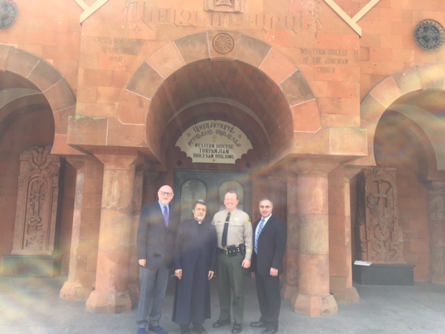 On Friday, March 19, 2017, LA County Sheriff Jim McDonell visited the Headquarters of the Western Diocese. Sheriff McDonell, who was accompanied by Captain Armen Dermenjian of the Burbank Police Department, met with the Diocesan Primate Archbishop Hovnan Derderian and Diocesan Council Chair Joseph Kanimian, Esq.