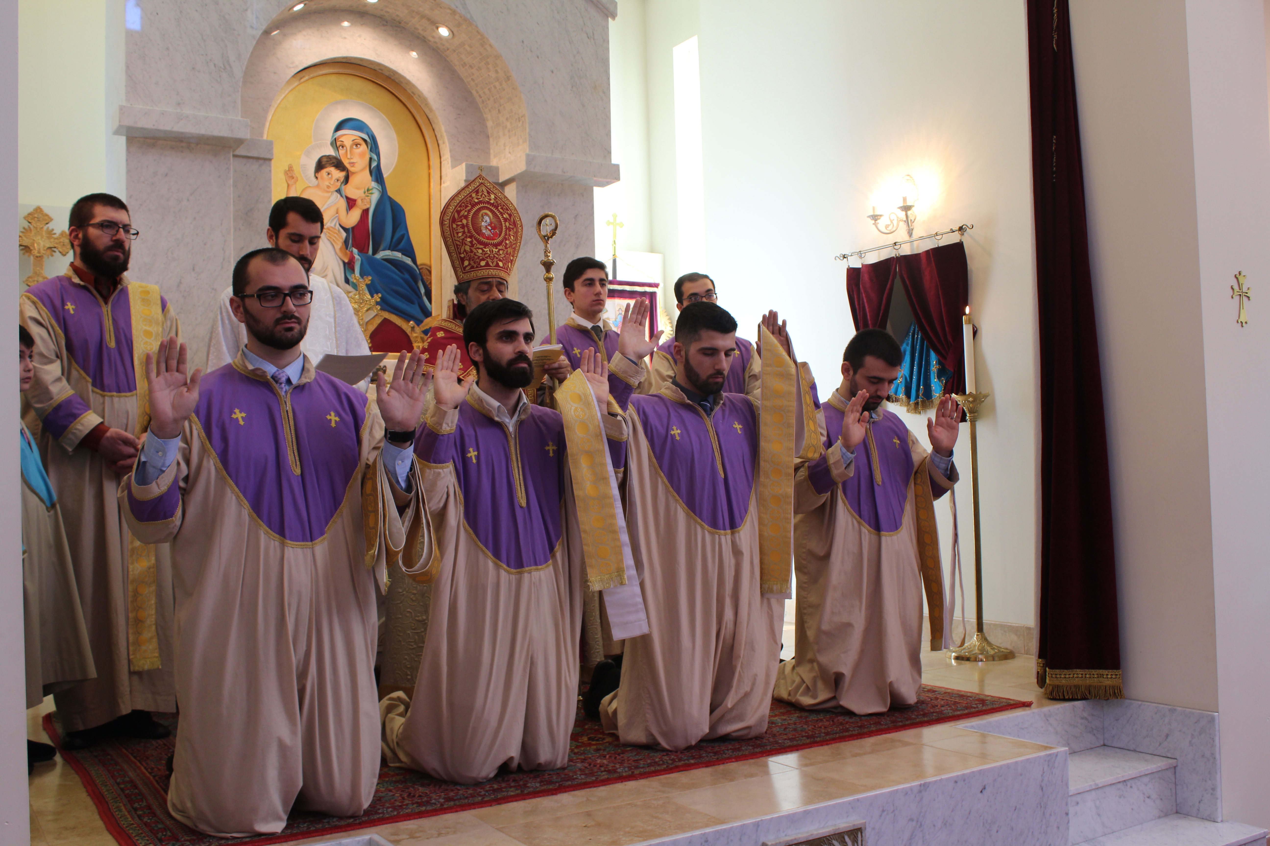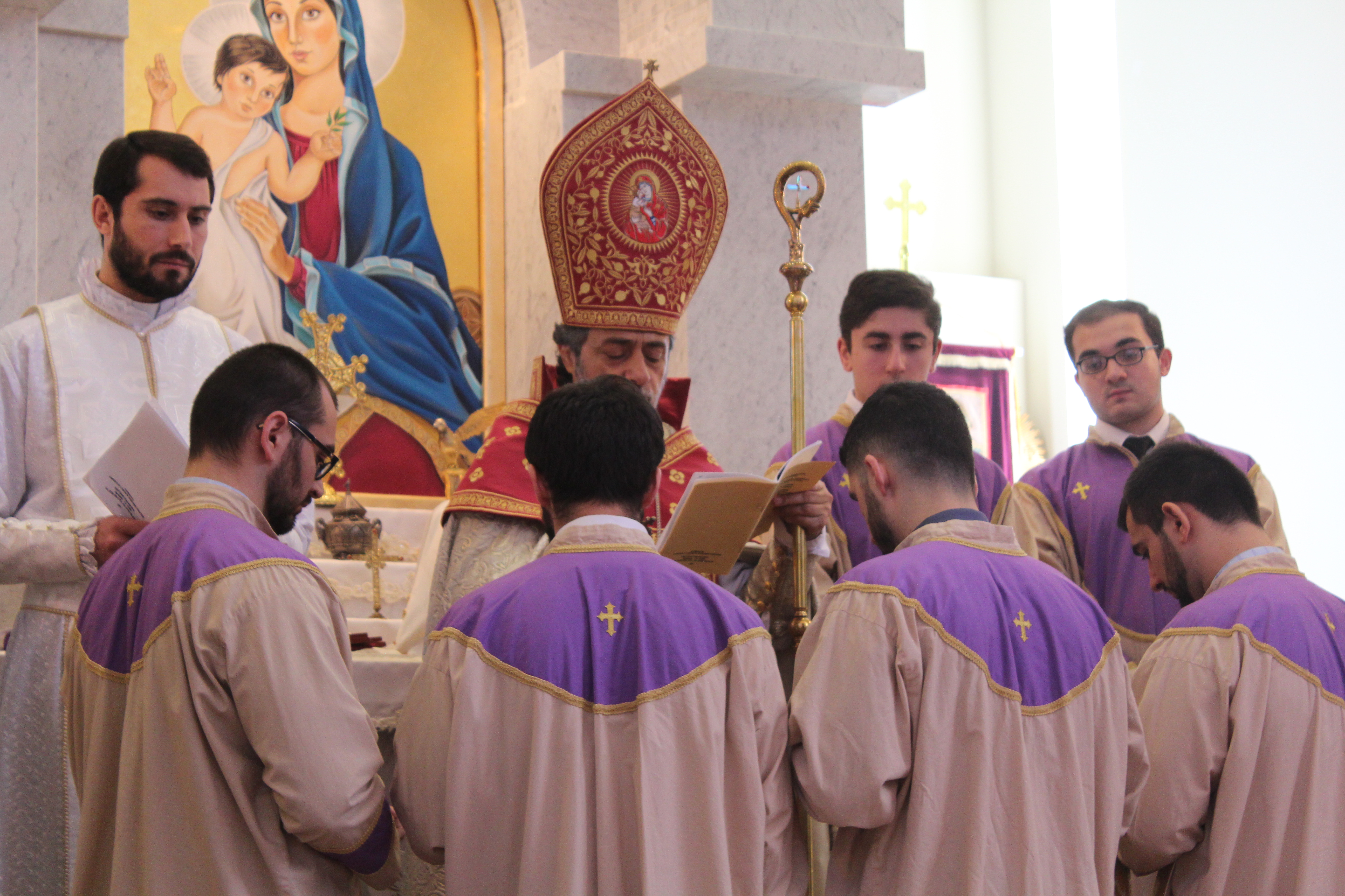 During the service and with the assistance of Fr. Yeremia, the Primate granted four minor orders of acolyte to Arthur Senionov. Acolytes Arnold Senionov and Hovig Tatarian were granted the rank of stole bearer. His Eminence ordained Hayk Tadevosyan, Albert Tadevosyan, Alex Esibov and Andranik Avtandilov as Deacons of the Armenian Church.