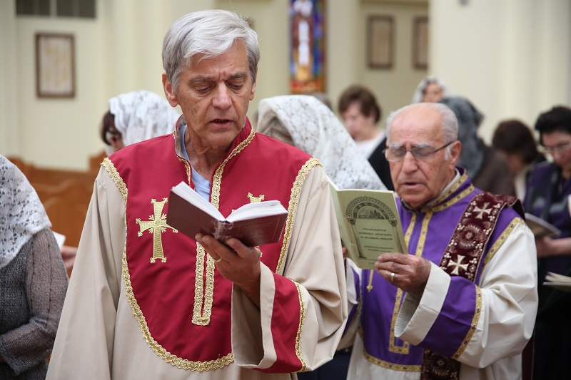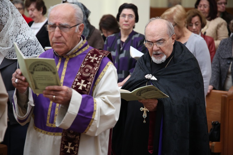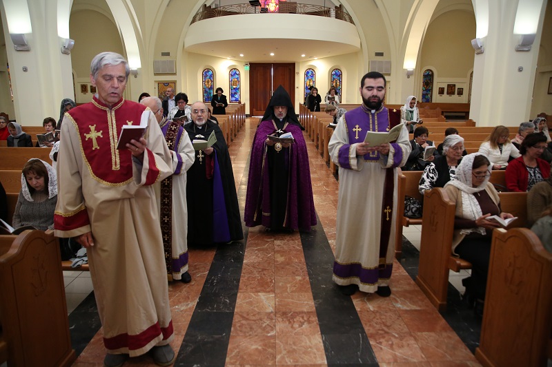 On Wednesday, March 22, 2017 at 10:30 a.m., His Eminence Archbishop Hovnan Derderian, Primate, presided over the Median Day of Lent (Mitchink) Sunrise (Arevakal) Service at St. Leon (Srbots Ghevontiants) Armenian Cathedral. Archpriest Fr. Dr. Zaven Arzoumanian, Archpriest Fr. Hovsep Hagopian, Archpriest Fr. Manoug Markarian and the Rev. Fr. Khajag Shahbazyan participated in the service. Â