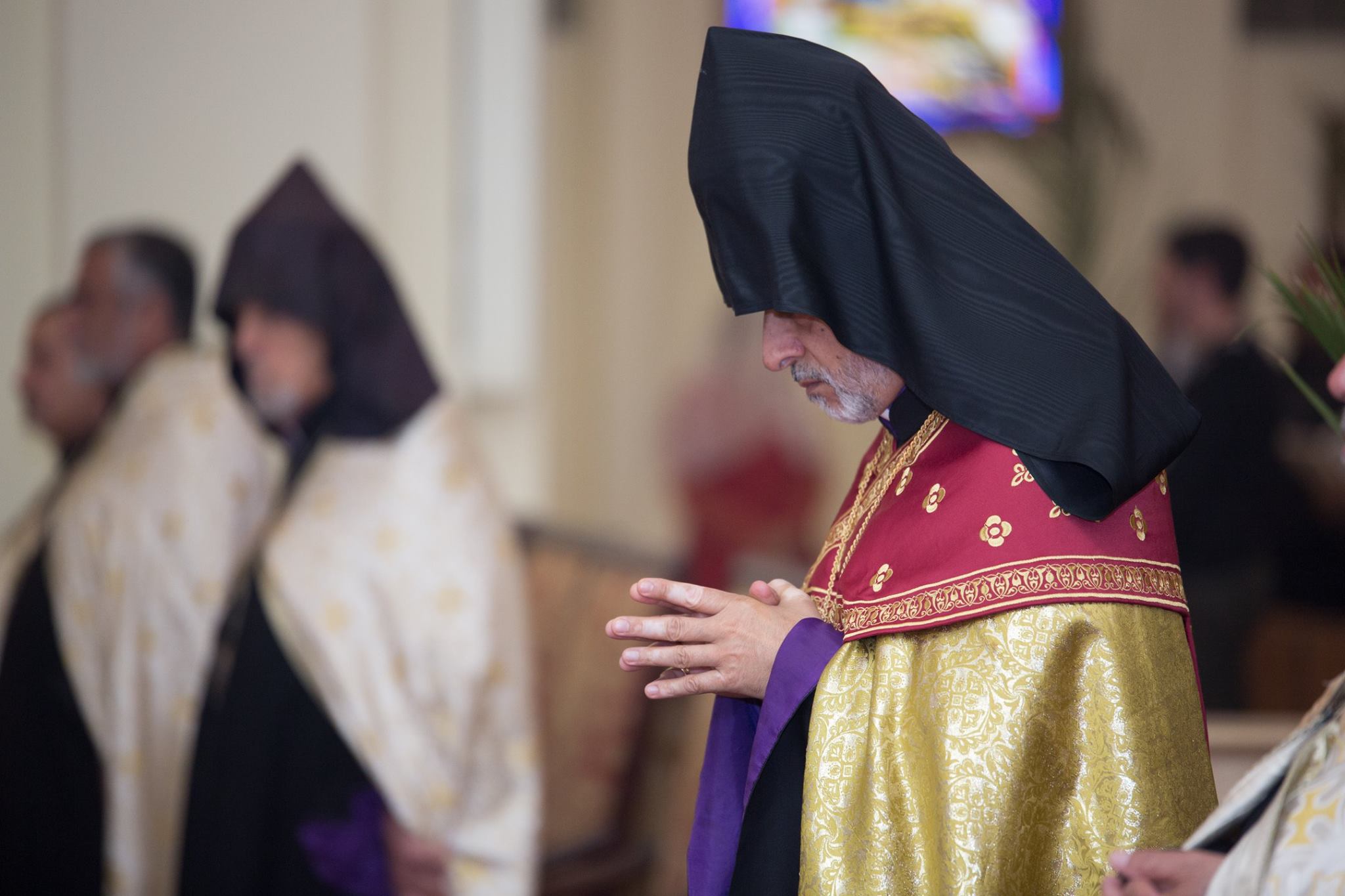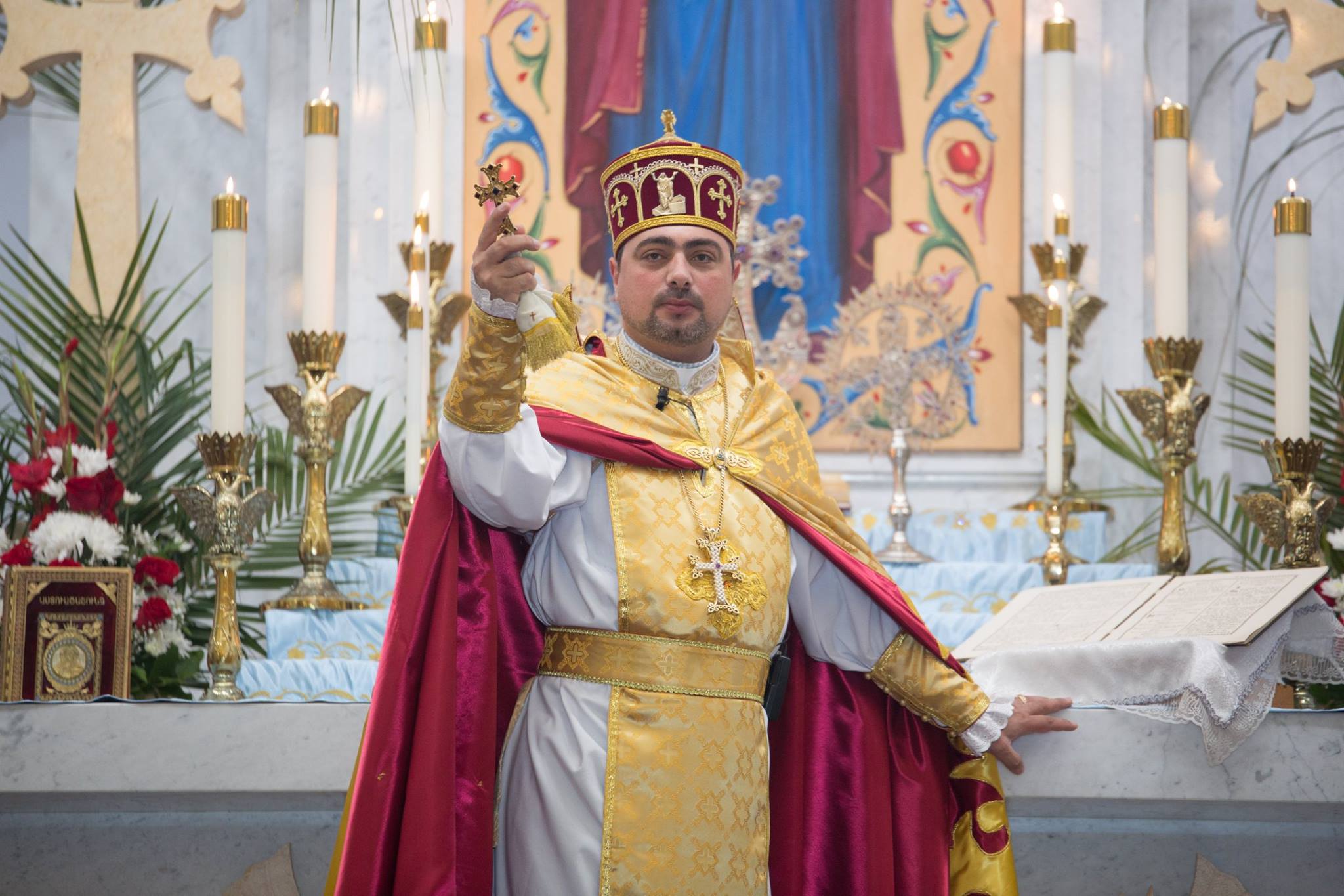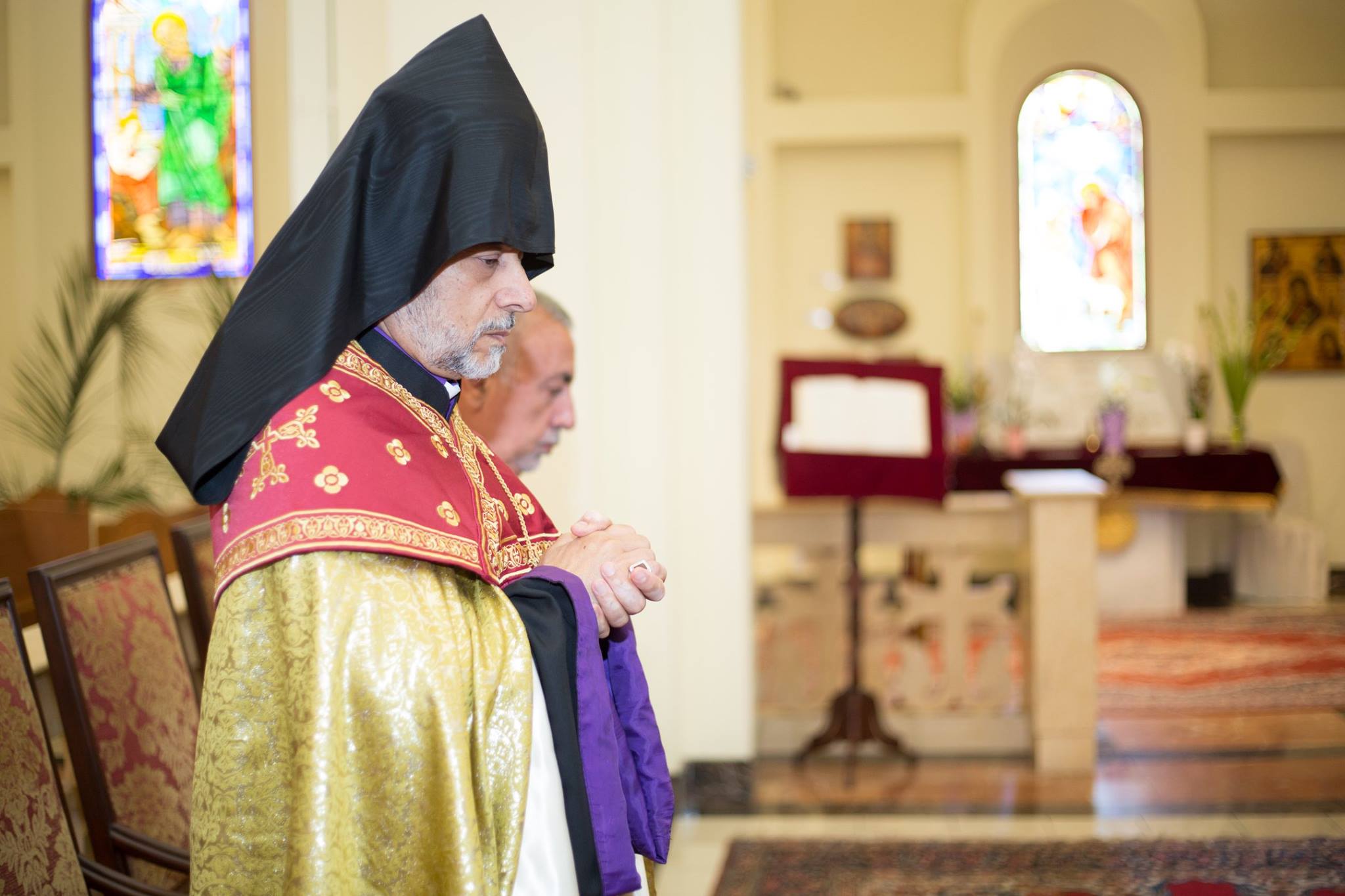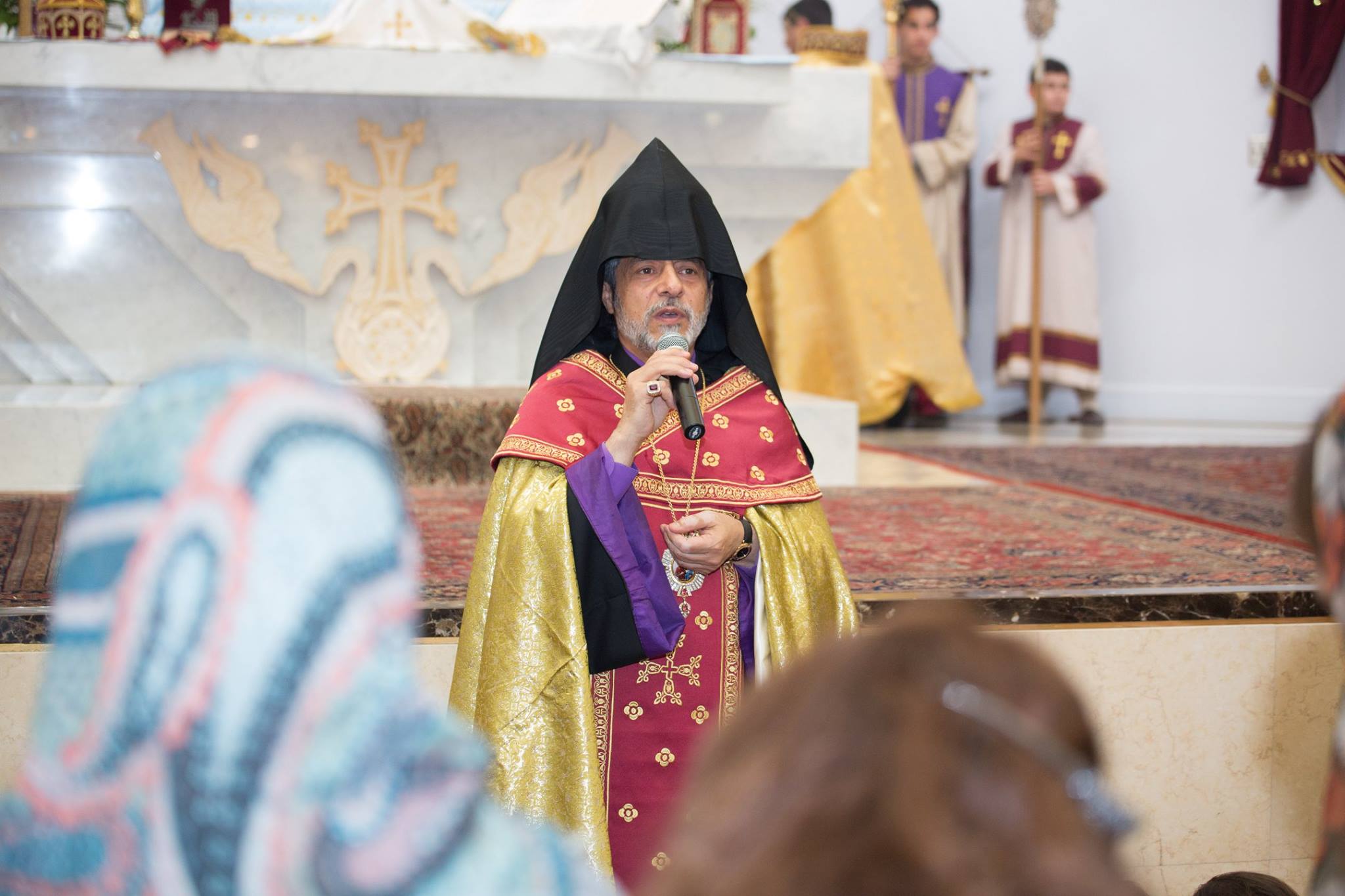 With the Primate presiding over the service, the day's celebrant was the Rev. Fr. Khajag Shahbazyan. His Eminence Archbishop Vatche Hovsepian, Archpriest Fr. Manoug Markarian, Archpriest Fr. Mampre Kesabyan and the Rev. Fr. Mikayel Kyureghyan participated the service.