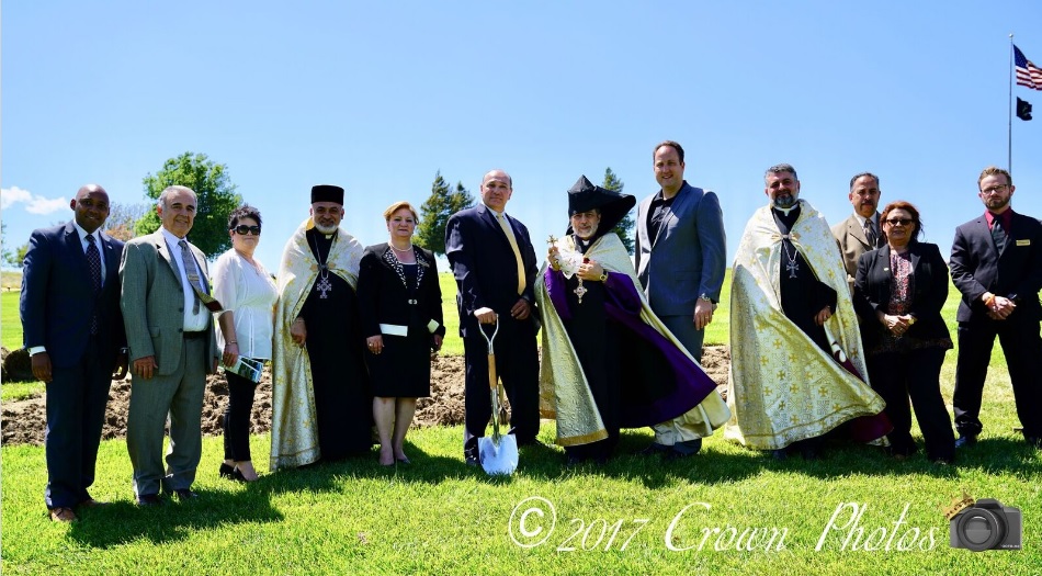 On April 19, 2017, His Eminence Archbishop Hovnan Derderian accompanied by Archpriest Fr. Shnork Demirjian and the Rev. Fr. Serovbe Alanjian held a special prayer service for the Groundbreaking of the Garden of Sardarabad at Eternal Valley Memorial Park in Newhall.