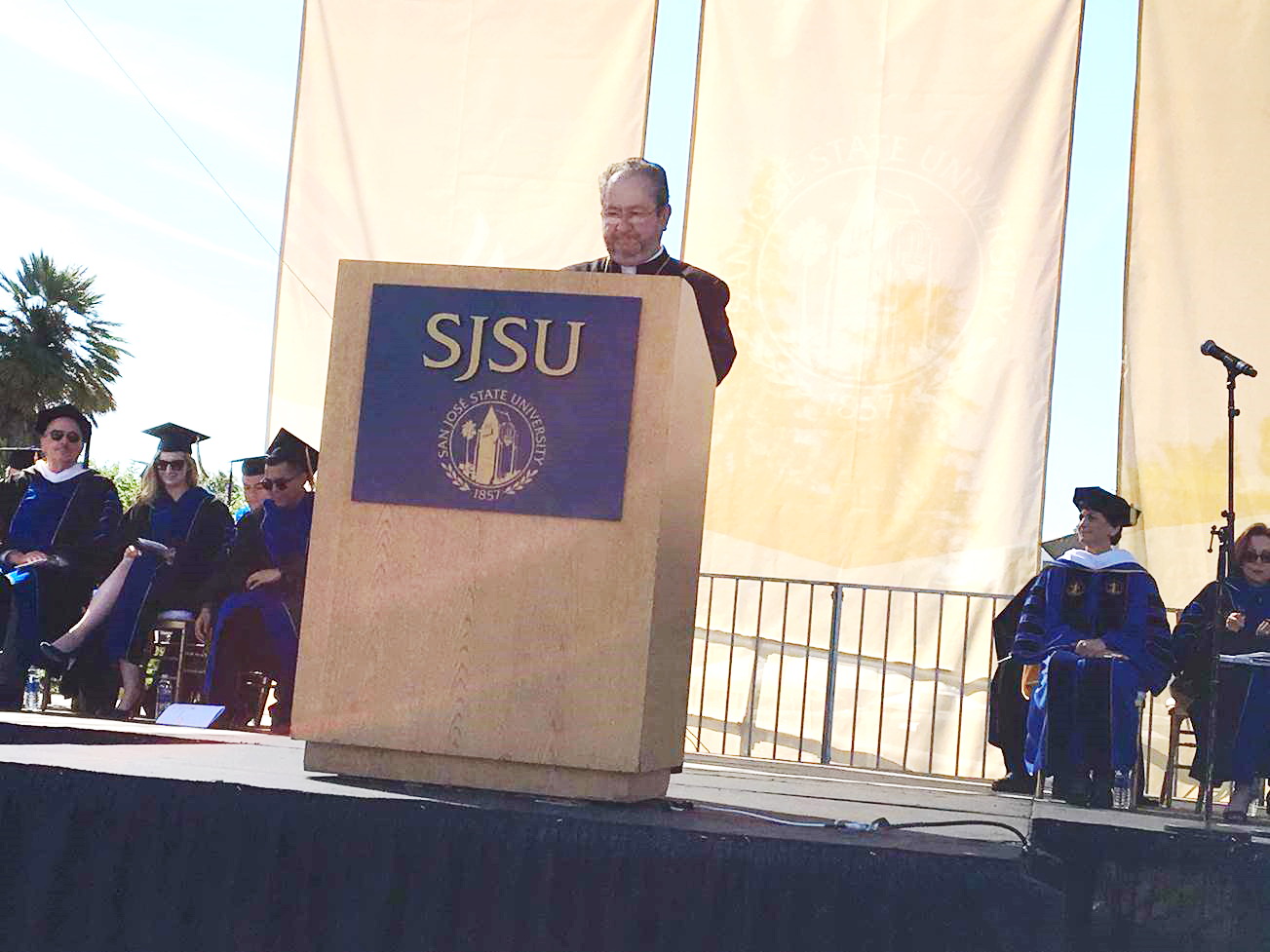 The inauguration event was filled with pomp and ceremony on the SJSU campus in the shadows of historic Tower Building and the Martin Luther King Jr. Library. His Eminence Archbishop Hovnan Derderian, Primate of the Western Diocese, was represented by Archpriest Fr. Datev Harutyunian, Pastor of St. Andrew Armenian Church of Cupertino.