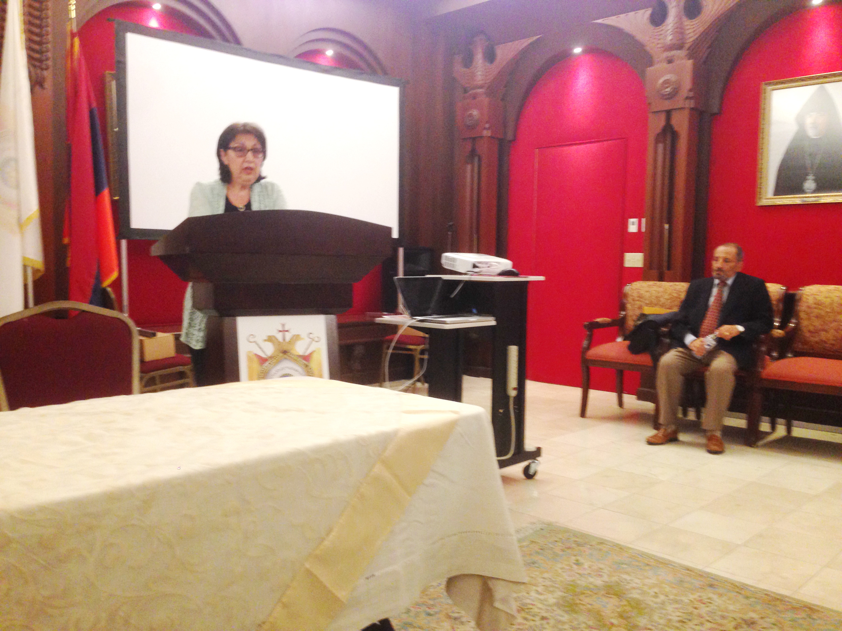 After that, there was a power point presentation of the Armenian Quarter in Jerusalem showing the prime holy sights that belong to the Armenians. The Holy Archangels, the Seminary, the "Armenian Golgotha" on the mountain. The 400 lanterns in St. James Cathedral which are still lit by oil, as well as the Tarkmanchats School, the renovated Gulbenkian Library and some commercial areas.