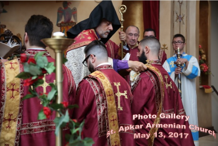 The faithful of St. Apkar Armenian Church received the blessings of His Eminence Archbishop Hovnan Derderian, Primate, who travelled to Scottsdale on May 13, 2017. On his pastoral visit, His Eminence granted four minor orders of acolyte to Hagop Alashanian, William Papazian, Michael Papazian and Sam Brown.