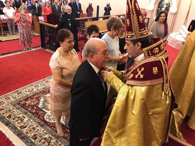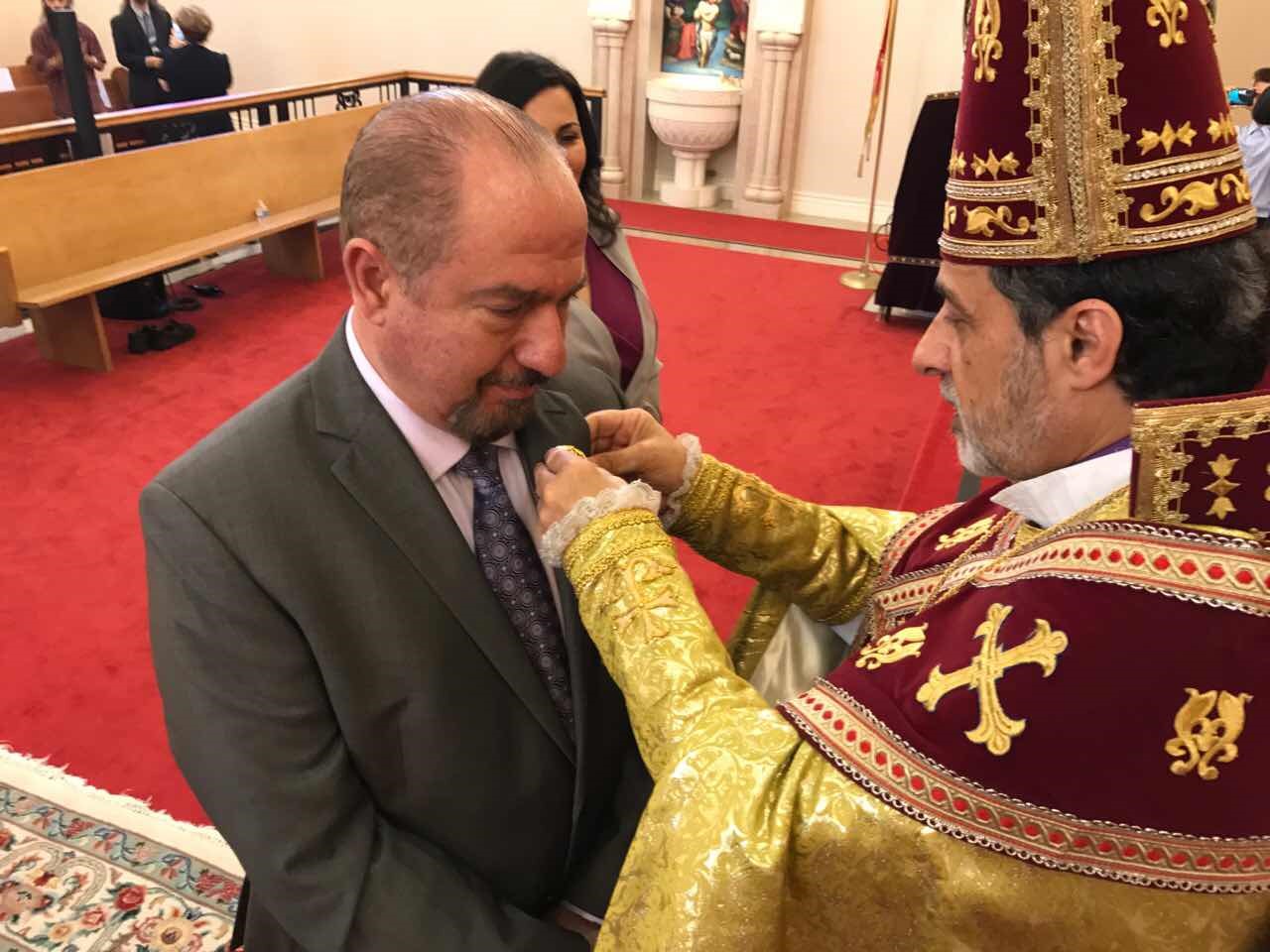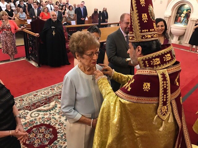 Delivering the benediction, the Primate said “Today’s honorees have played a particularly pivotal role in the mission of the parish during recent years. It was during this historic time that saw the completion of the new sanctuary, as well as the period of transition to the pastorate of Fr. Sarkis. I consider Joan Meymarian, Ray Bedian, Kourken Matossian and Vahe Skenderian to be my co-laborers in the ministry of Christ.”