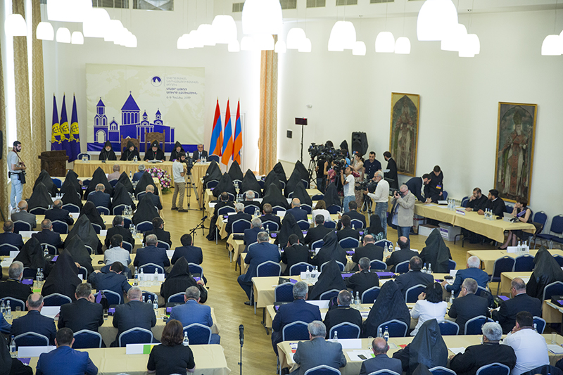 Today the draft of the modified Constitution for the National-Ecclesiastical Assembly will be presented to you for discussion. By the adoption of this Constitution, the activities of the highest jurisdictional body of Armenia, with its authority, will play an important role in the mission of the settlement of ecclesiastical and national issues and in the blessed endeavors to build a prosperous future for our people. By the will of God, we shall shortly undertake the work of formation of the other articles of the Church’s Constitution. We are assured that by the will of God we shall be able to overcome the challenges that our Church is facing in respect to the adoption of the constitution, having as an ultimate desire to have a completed constitution for our Church. The affirmation of our Church life on constitutional grounds will provide positive outcomes to the activities of our Church, it will encourage the involvement of our people in the ecclesiastical life, and it will also increase the credibility of our church organizations and strengthen optimism towards our future.