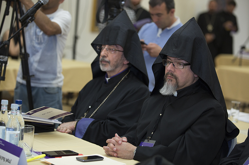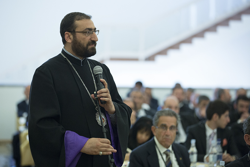 During the first session the election of the secretaries, audit and rules committee was held. His Eminence Archbishop Khajag Barsamian, Primate of the Eastern Diocese of the Armenian Church of North America, and Mr. Levon Sargsyan (Araratyan Pontifical Diocese), were elected as co-chairman of the Assembly. The positions of co-Vice Chairman was assumed by His Eminence Archbishop Abraham Mkrtchyan, Primate of the Diocese of Vayots Dzor, and Dr. Varoujan Altebarmakian, member of the Supreme Spirital Council (Western Diocese of the Armenian Church of North America).