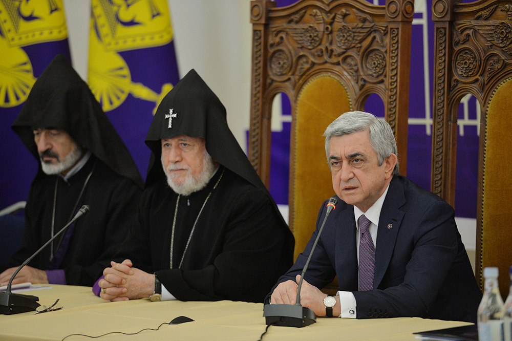 President Sargsyan greeted the members of the Assembly, stressing the importance of convening the 6th Armenian Church Representative Assembly in the Mother See of Holy Etchmiadzin. He wished the Assembly members productive work.