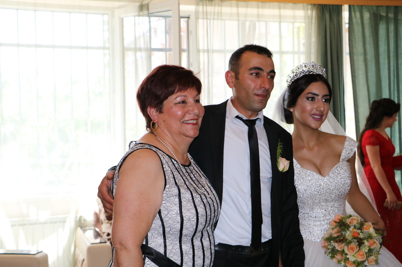 The groom received toasts from Mer Hooys director Mihran Mirijanyan, his friends and father. Sooren then escorted Armine from her home of nearly 5 years to waiting cars in which they traveled to Abovyan City, where the groom’s relatives met the couple at the family home. The groom's 90-year-old grandfather danced with joy at the home, and all through the night, celebrating the wedding of his grandson. Mer Hooys program director Noune Geghamyan, pedagogue Yn. Lusine Beynaminyan, mentor Tzovig Gevorgyan, and Mer Hooys board president Hon. Adrienne Krikorian accompanied the bride to her new home.