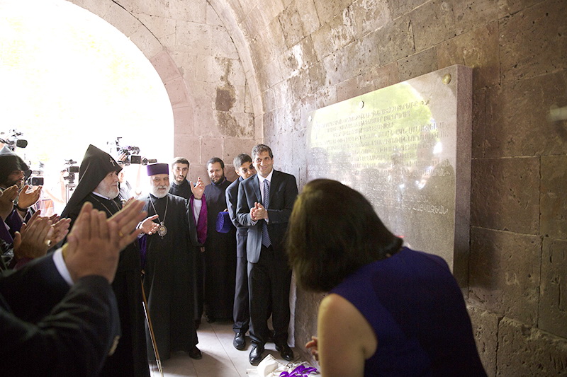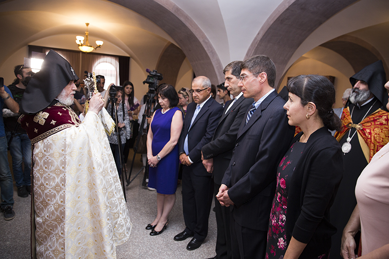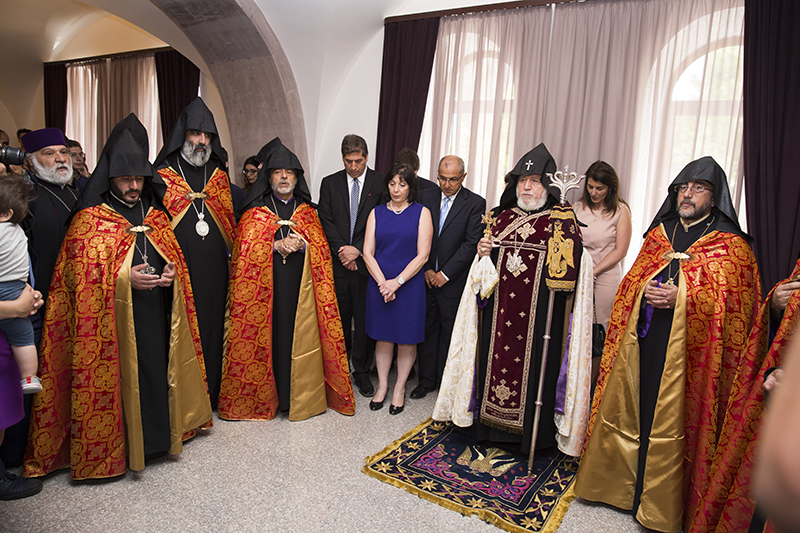 Following the traditional ribbon-cutting ceremony, His Holiness reflected on the restoration process of the historic monastic center of Harichavank which was made possible through the kind-hearted generosity of Mr. and Mrs. Gerald and Patricia Turpanjian years ago. The Catholicos of All Armenians reassured that the once thriving monastery will flourish once again giving way to the reinstatement of the monastic life in the Armenian Church.