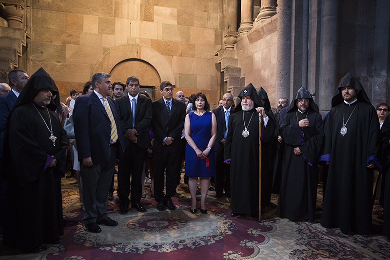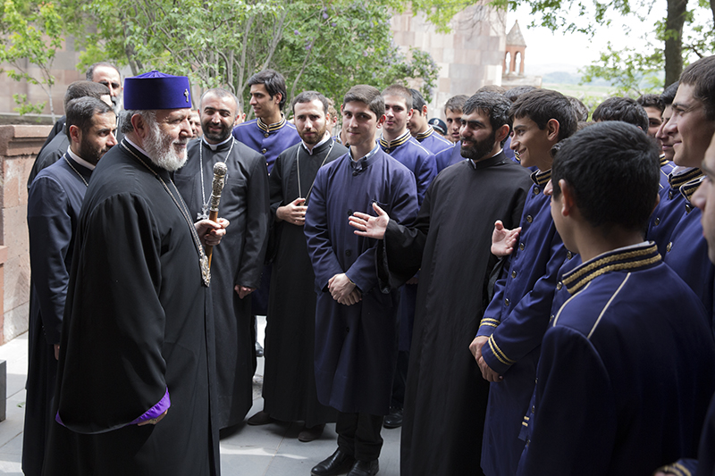 In the courtyard of the monastery, the Pontiff of the Armenian Church and the guests were greeted with exciting song and dance performances by students of cultural centers in Yerevan and Gyumri which operate under the auspices of the Mother See of Holy Echmiadzin and the AGBU.
