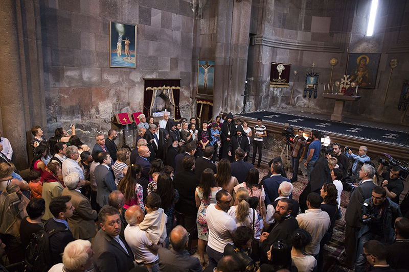 The dedication commenced with the unveiling of the plaque after which the Catholicos of All Armenians led a procession to St. Mary Church for a prayer of thanksgiving.